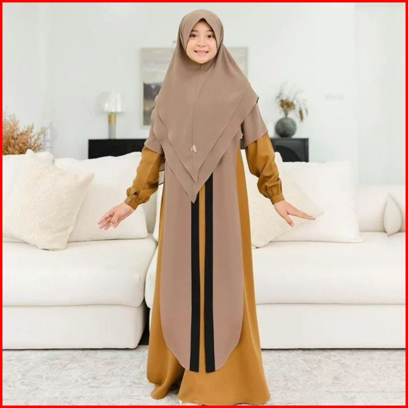 Gamis Anak Perempuan Terbaru Cardenza Syar I Kids Plus Hijab Model 2 Layer Busana Muslim Anak Tanggung Usia 11 12 13 14