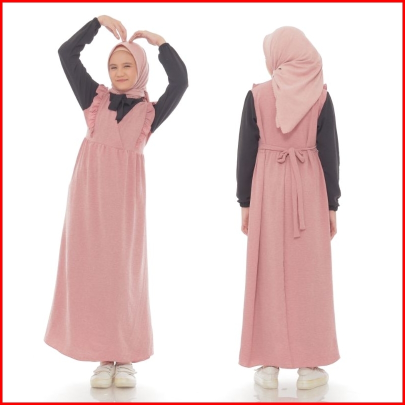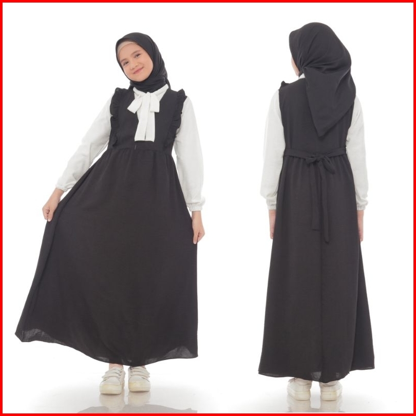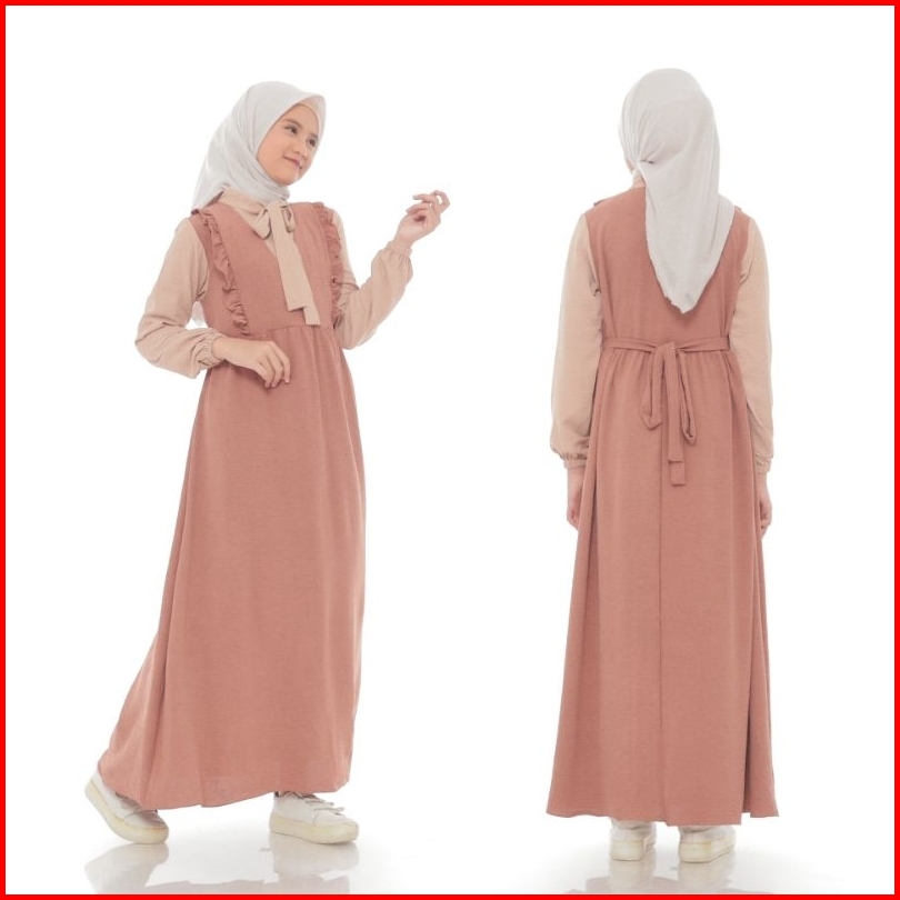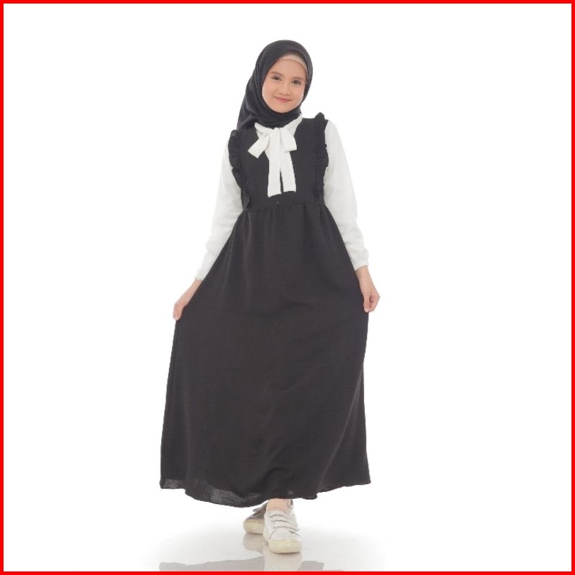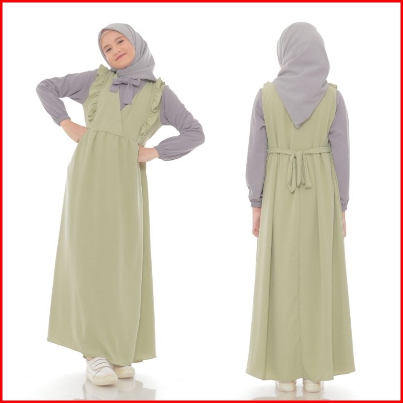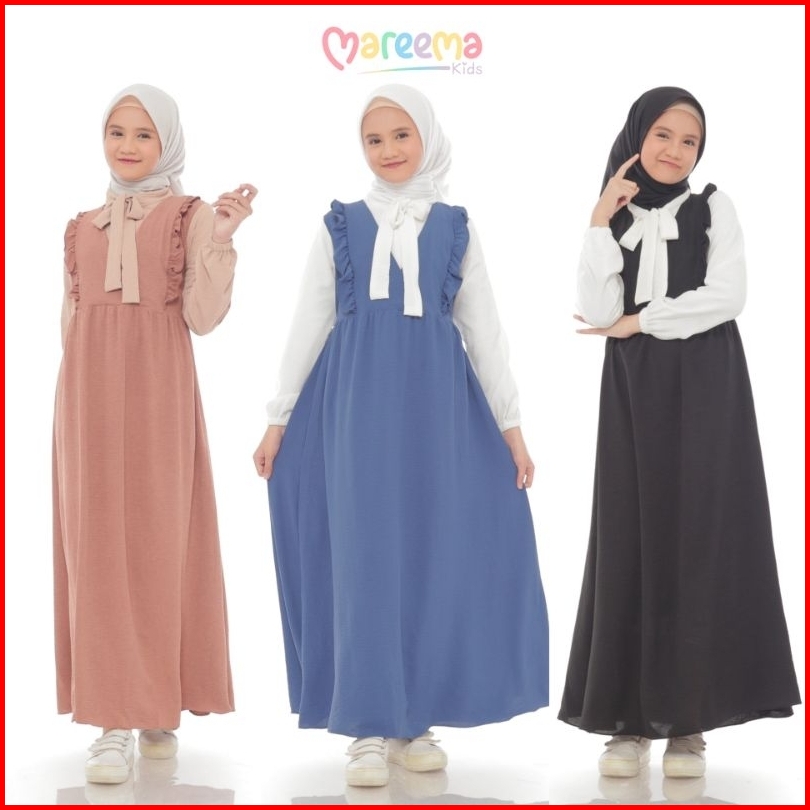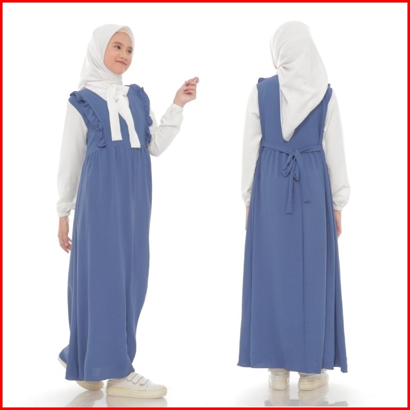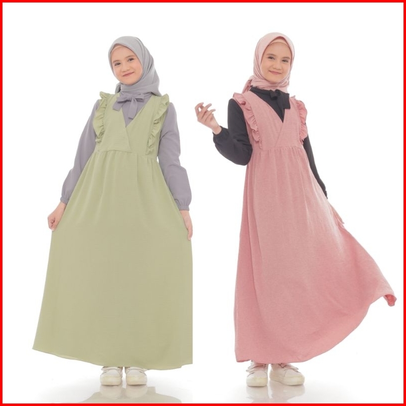 Gamis Lebaran Baju Dress Anak Perempuan Muslimah Tanggung Crinkle Airflow Dress Kekinian Terbaru Lebaran 2024