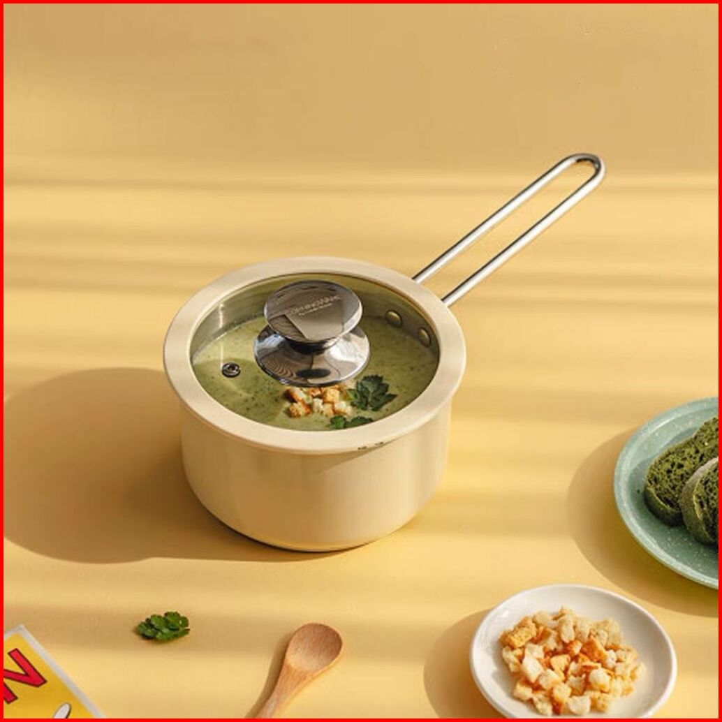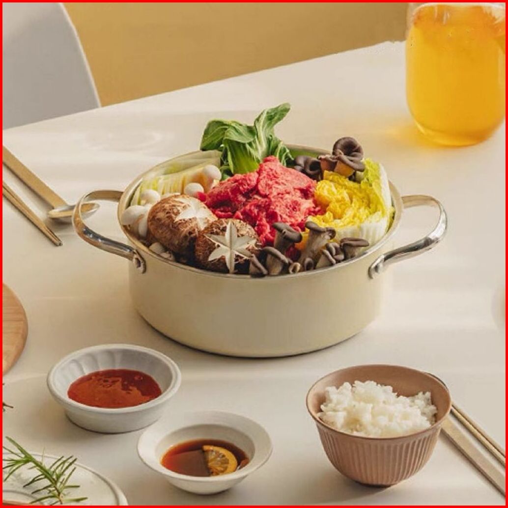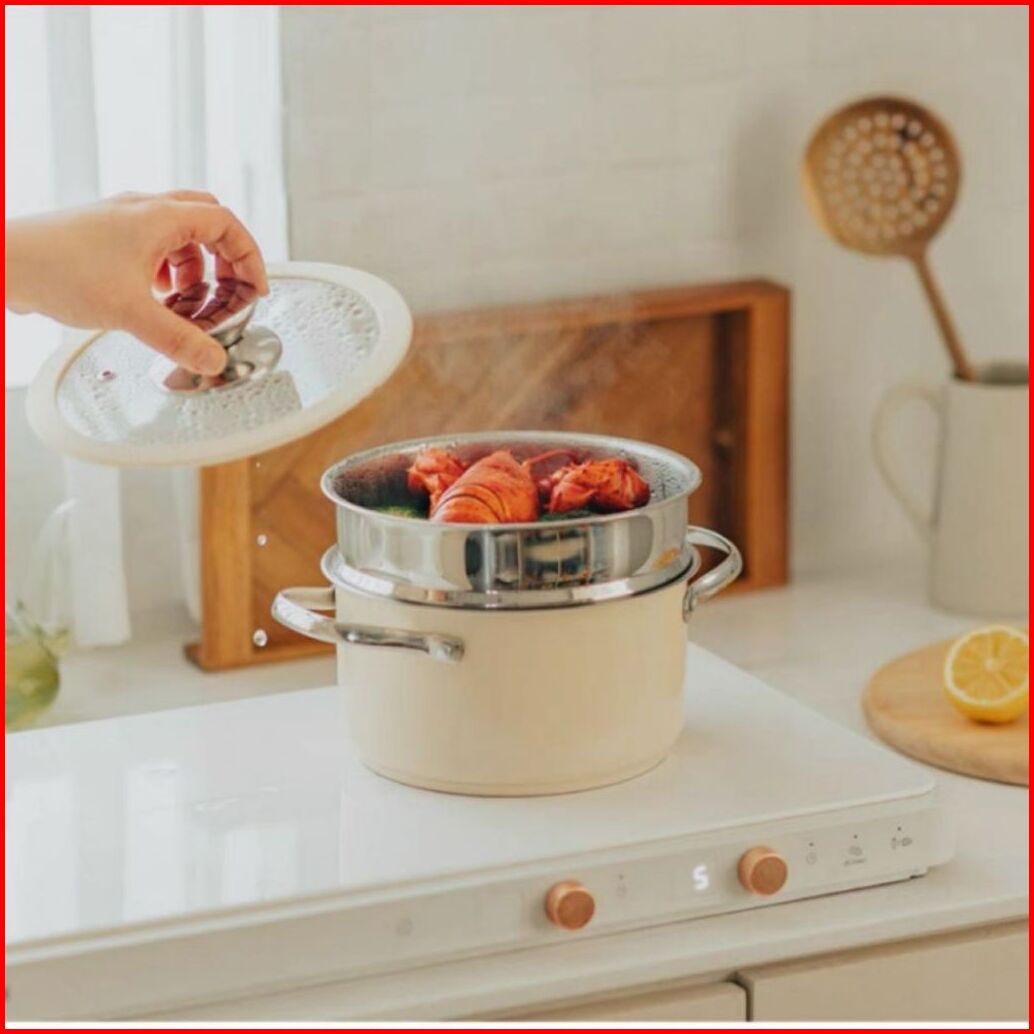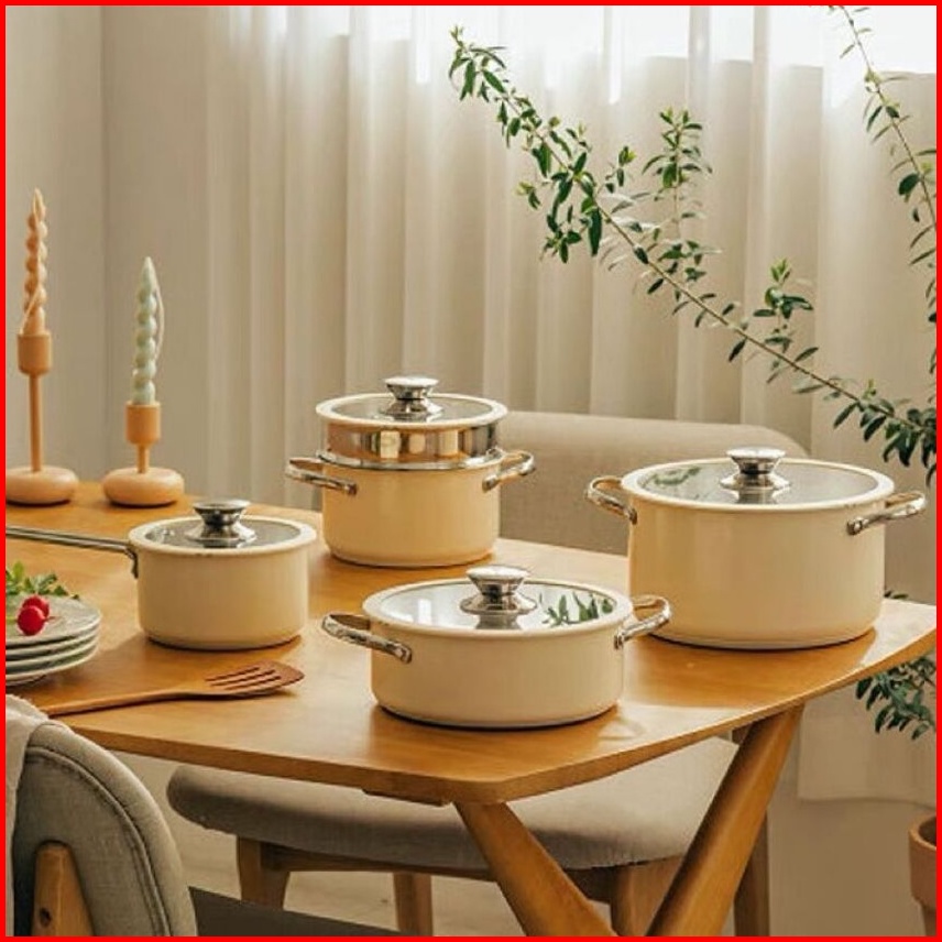 99khome Premium Saucepan Stockpot Cookware Set Steamer Stainless Steel Panci Kukus Anti Lengket Dengan Tutup Kaca Cream