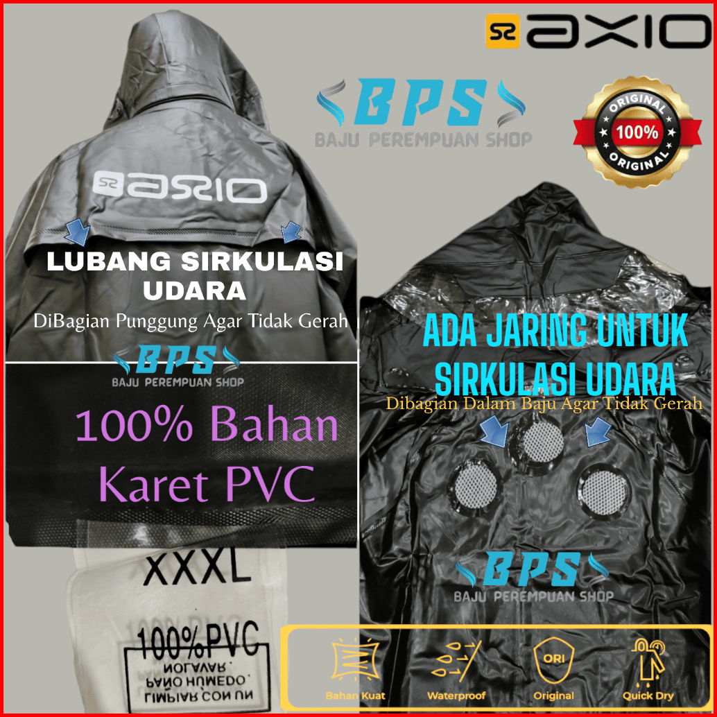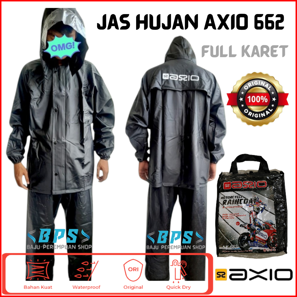 Jas Hujan Axio 662 Original Karet Setelan Baju Celana Mantel Mantol Raincoat Ax662 Rubber
