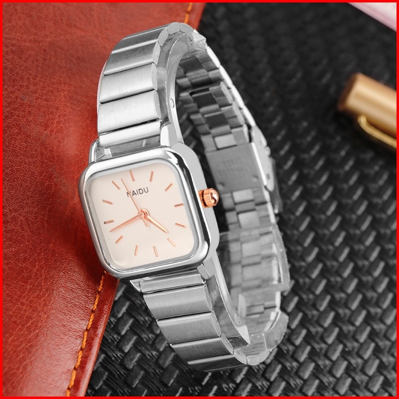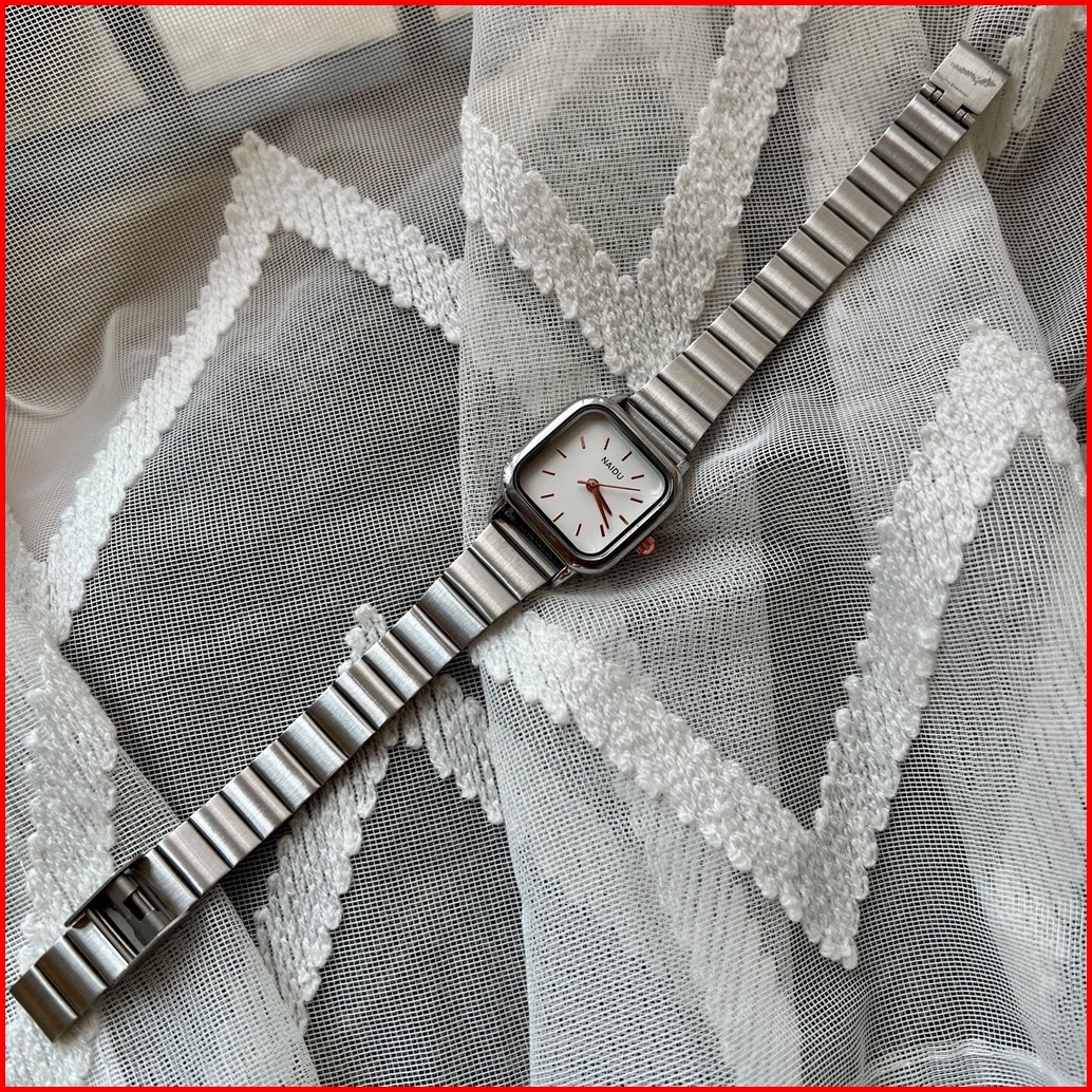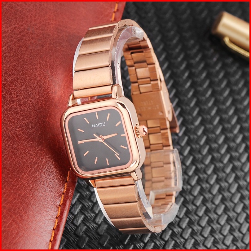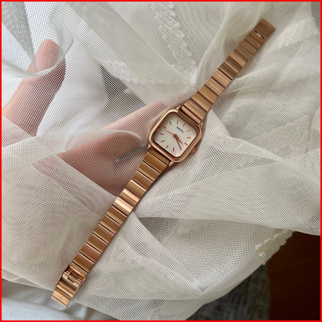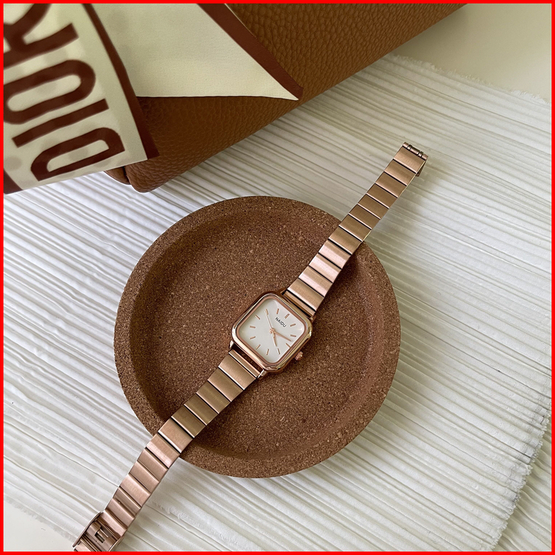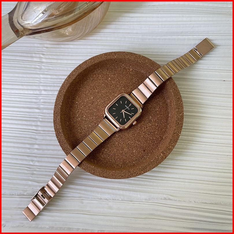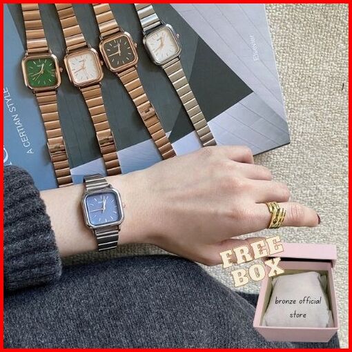 Bronze Jam Tangan Wanita Kuarsa Jam Tangan Tali Baja Gaya Kasual Vintage Hitam Putih Kotak Gratis Zz05