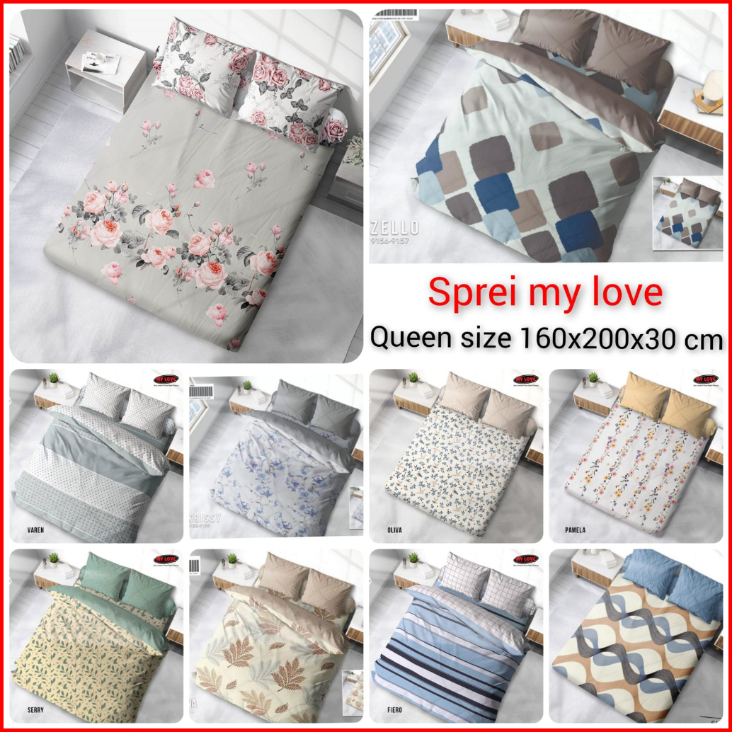 All New My Love Sprei Fitted Queen 160x200x30 Cm Tinggi 30 Cm Terlaris Pilihan