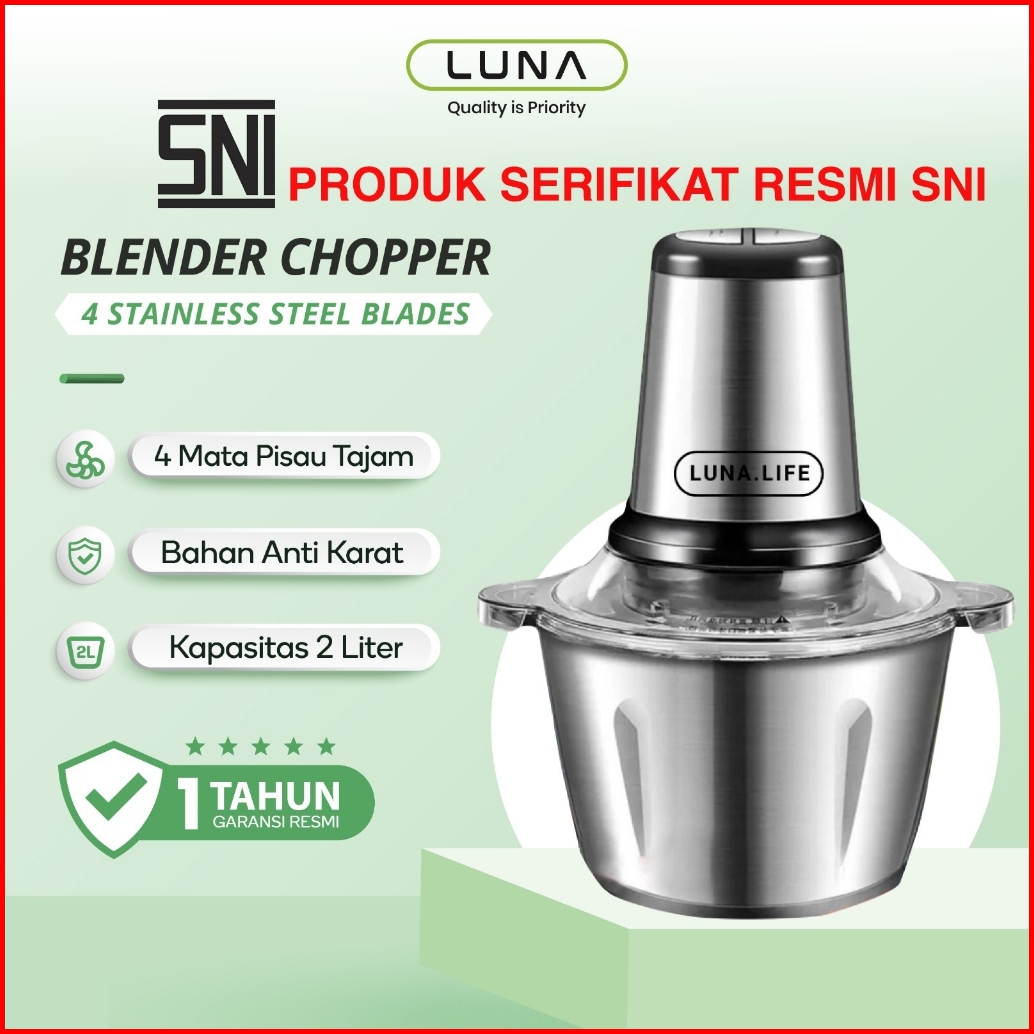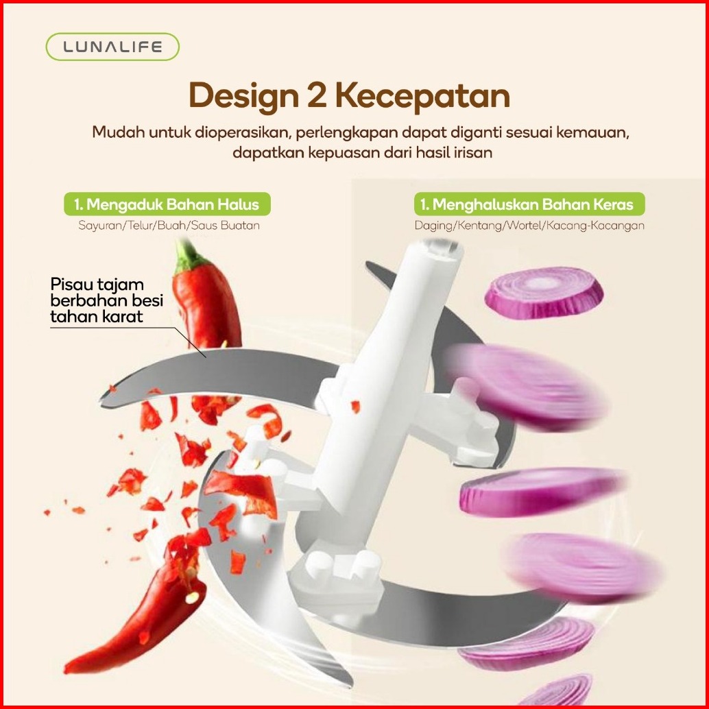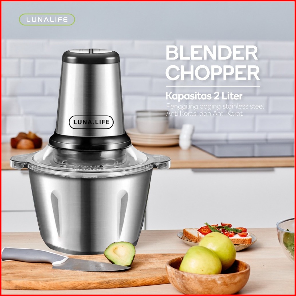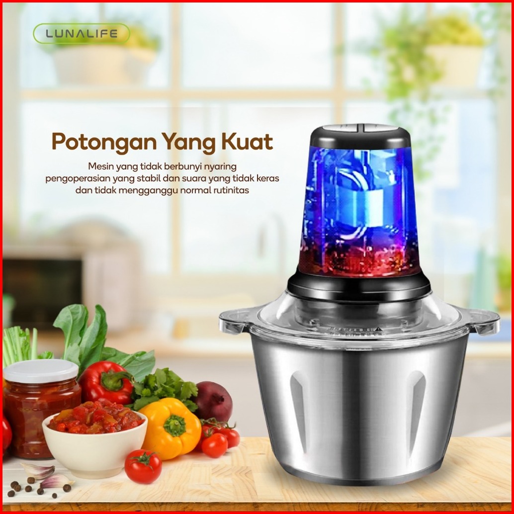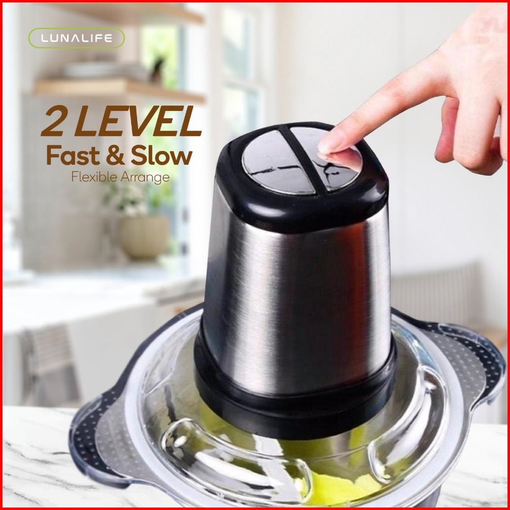 Lunalife Food Chopper 2l Stainless 250watt Penggiling Daging Multifungsi Pisau Sudah Dirakit Warranty