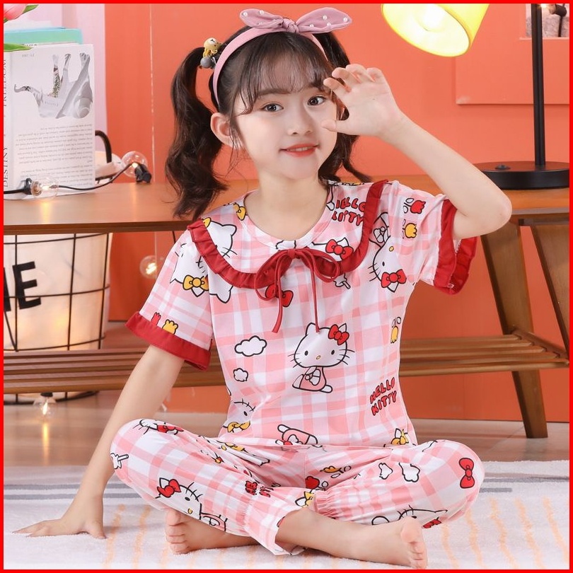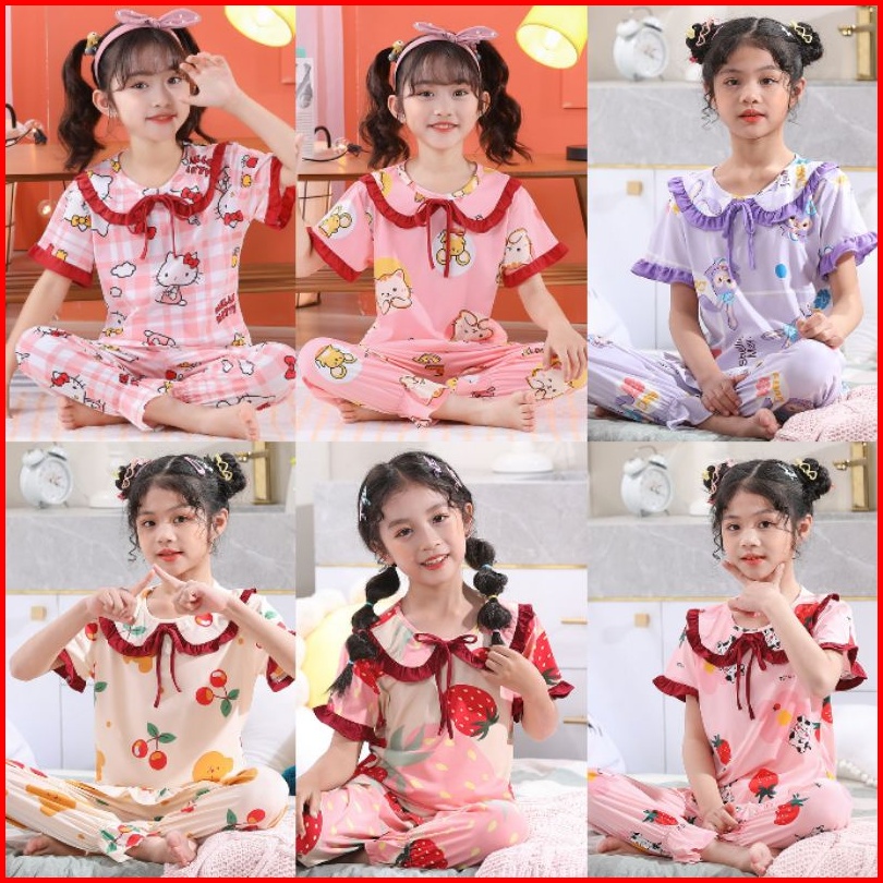 Sora Setelan Anak Baju Lengan Pendek Celana Panjang Piyama Baju Tidur Karakter Baju Rumah Impor Import Murah Feminim Man