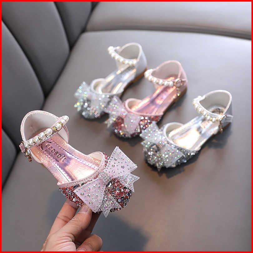 Sandal Sepatu Anak Perempuan Import Size 21-36 Pesta Korea Princess Mutiara Mewah Terbaru 1 2 Tahun - Tanggung Anak Pere