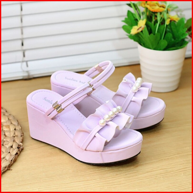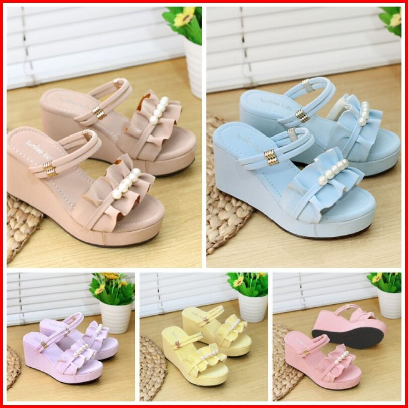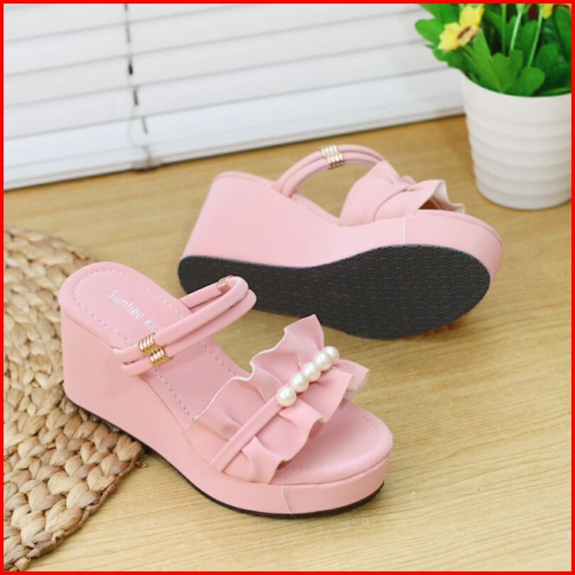 Sandal Pesta Anak Perempuan Wedges 6 5cm Gesper Mutiara 01