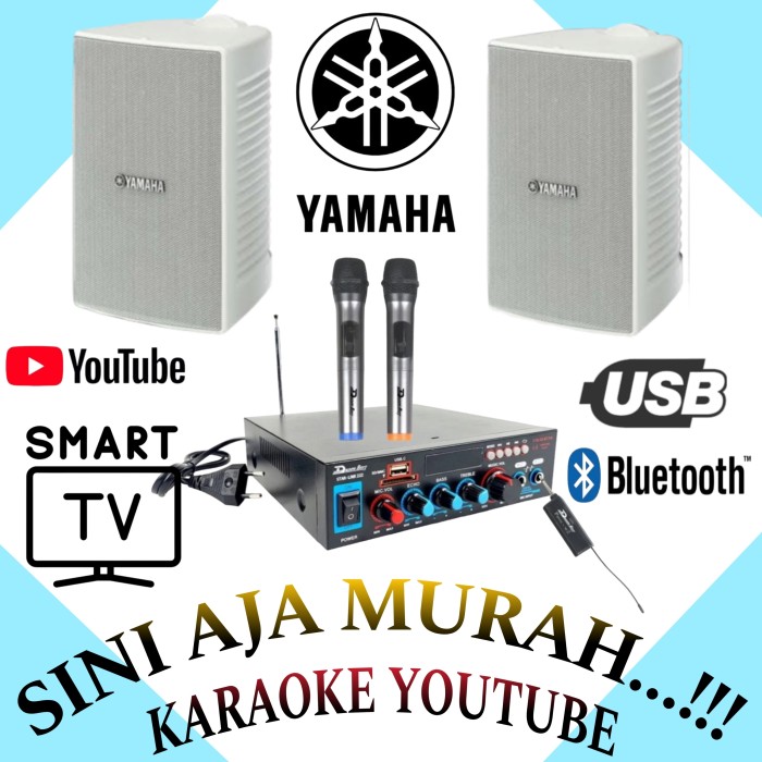 KARAOKE SET MINI SPEAKER YAMAHA 4 INCH, AMPLIFIER KARAOKE YOUTUBE SMART TV, 2 MIC WIRELESS.. - YAMAHA HITAM