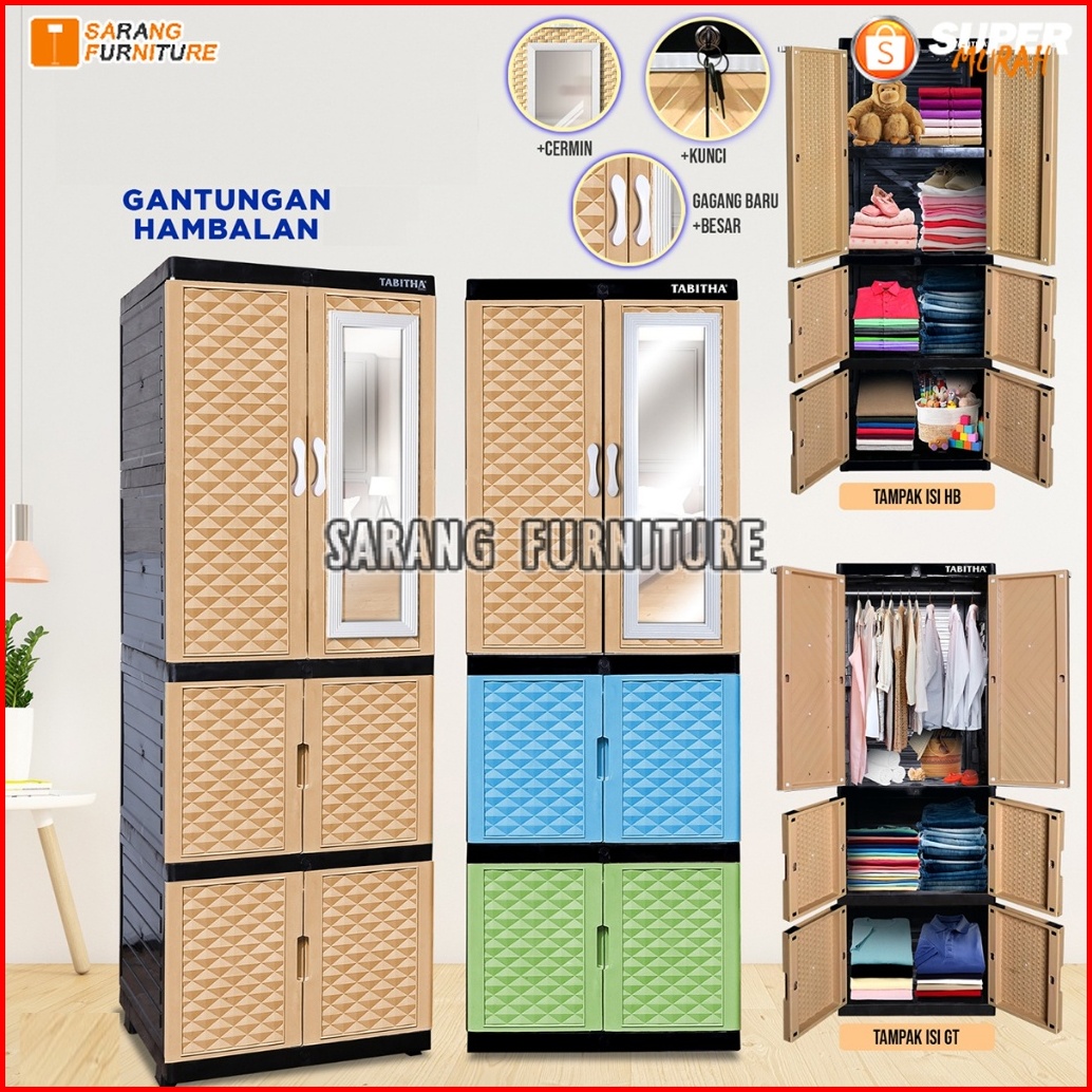 Lemari Pakaian Plastik Tabitha Gantung Rak Full Kunci Kaca Cermin Murah Ls2ps Gt Hb Lemari Pintu