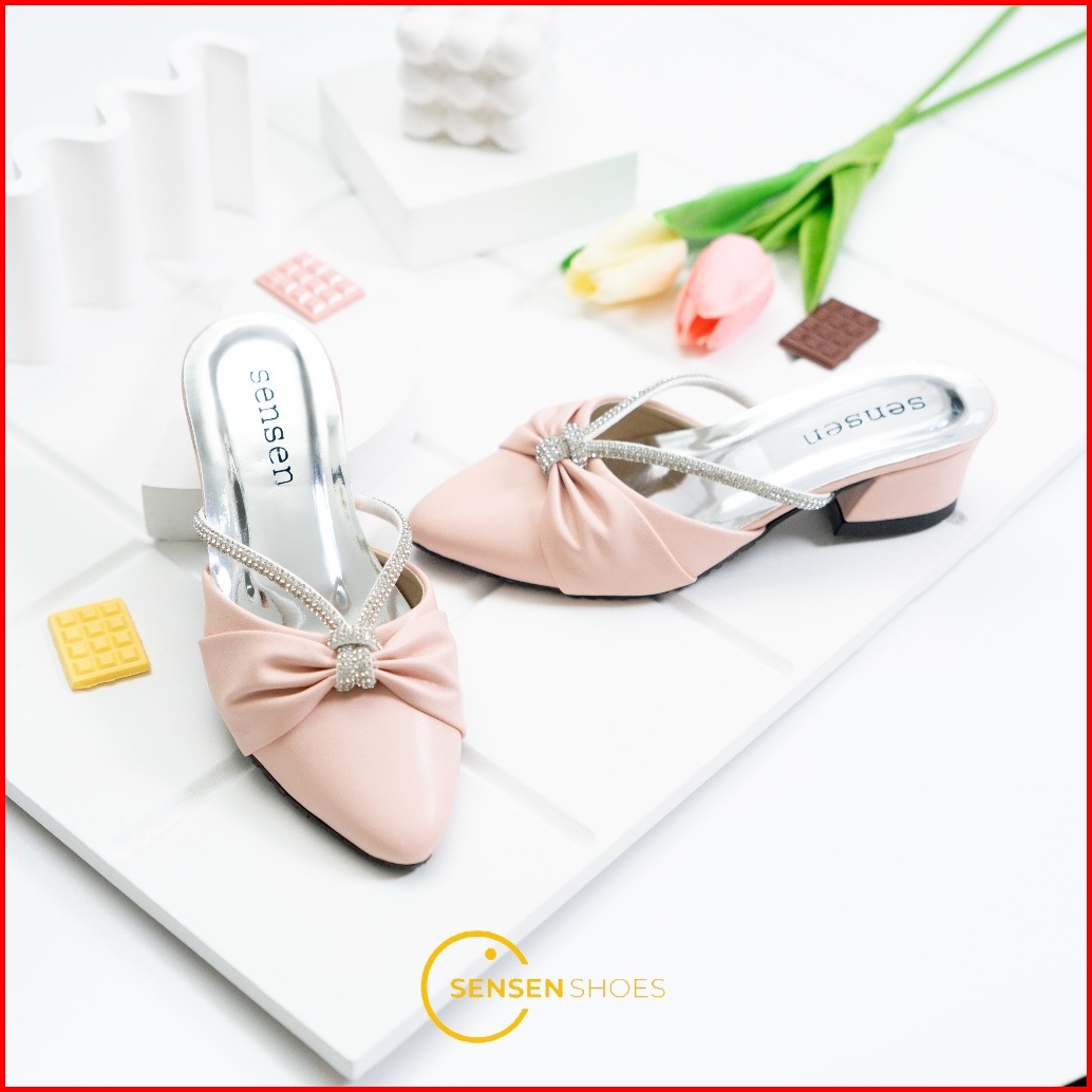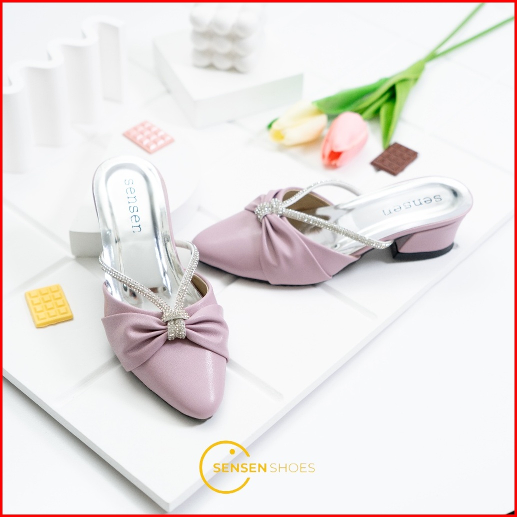 Sandal Anak Perempuan Pesta Hak 3cm Motif Pita Glossy Selop Sol Karet Anti Licin