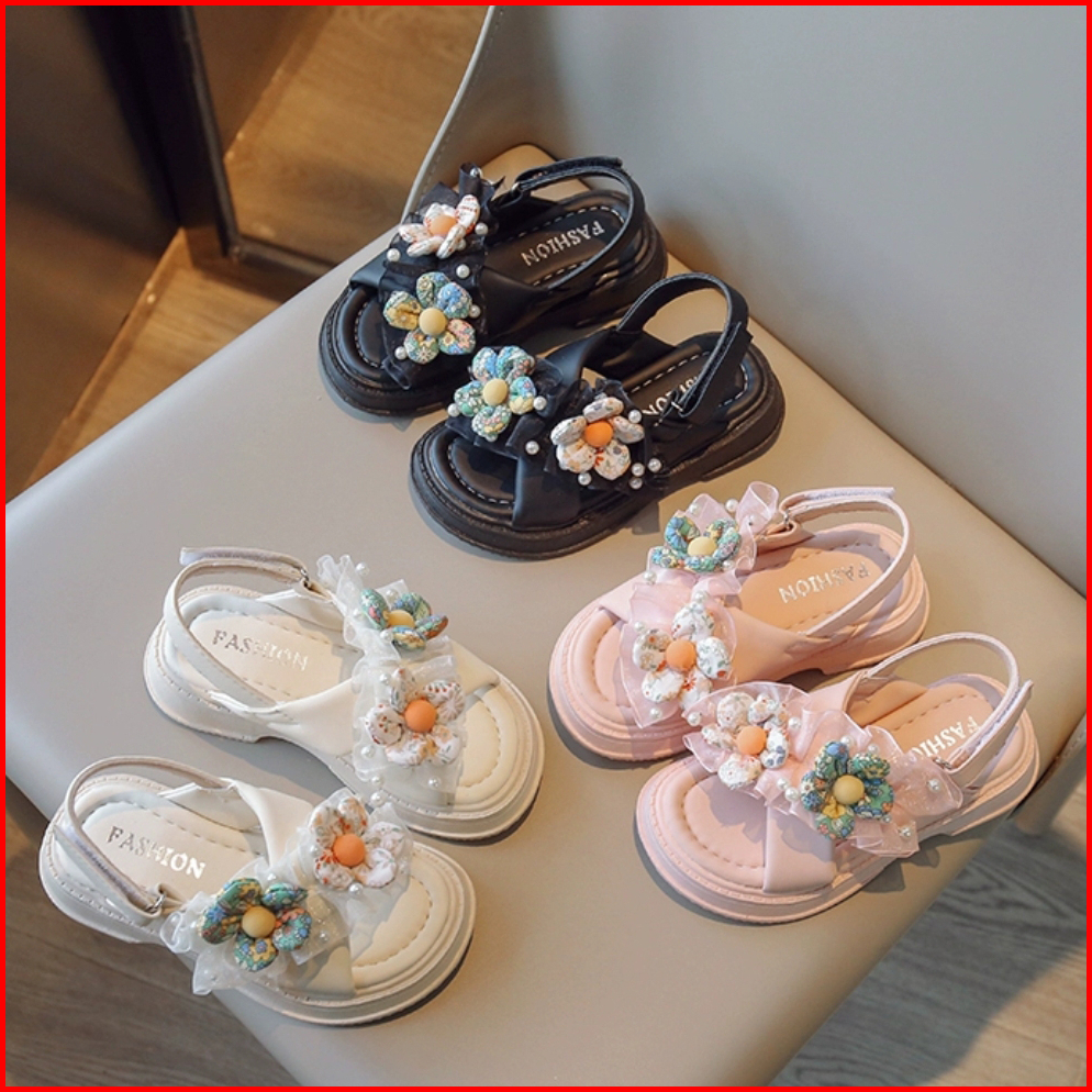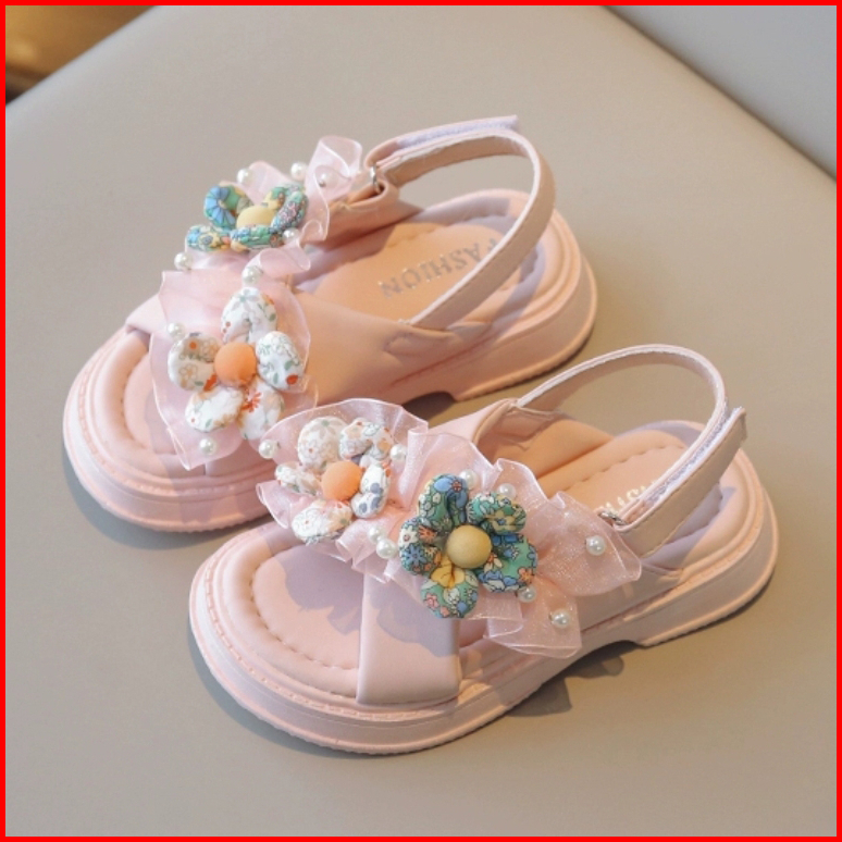 Promo 9.9 Import Okaybaby B319 Sandal Anak Perempuan Flower Lucu Sendal Kekenian Sepatu Pesta Anak Cewek Anti Slip Anti