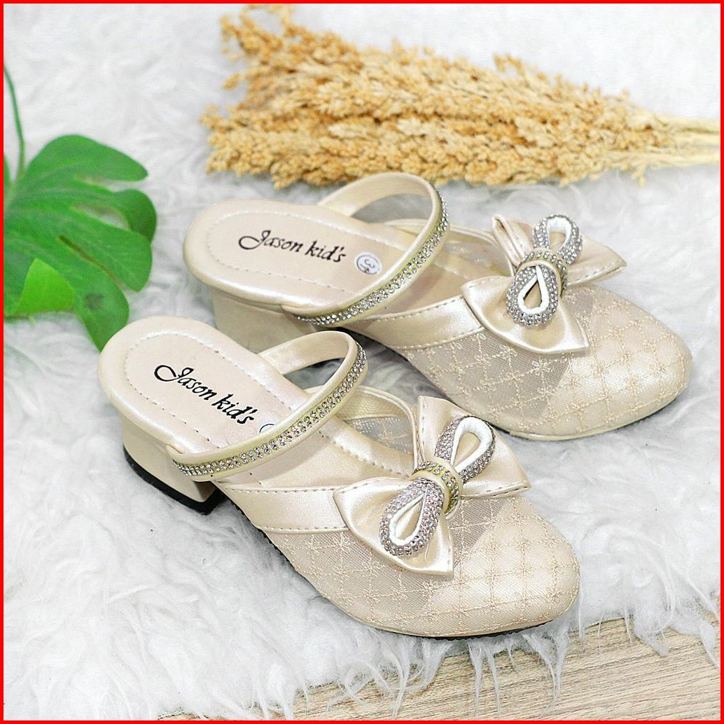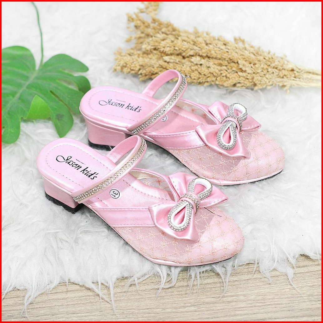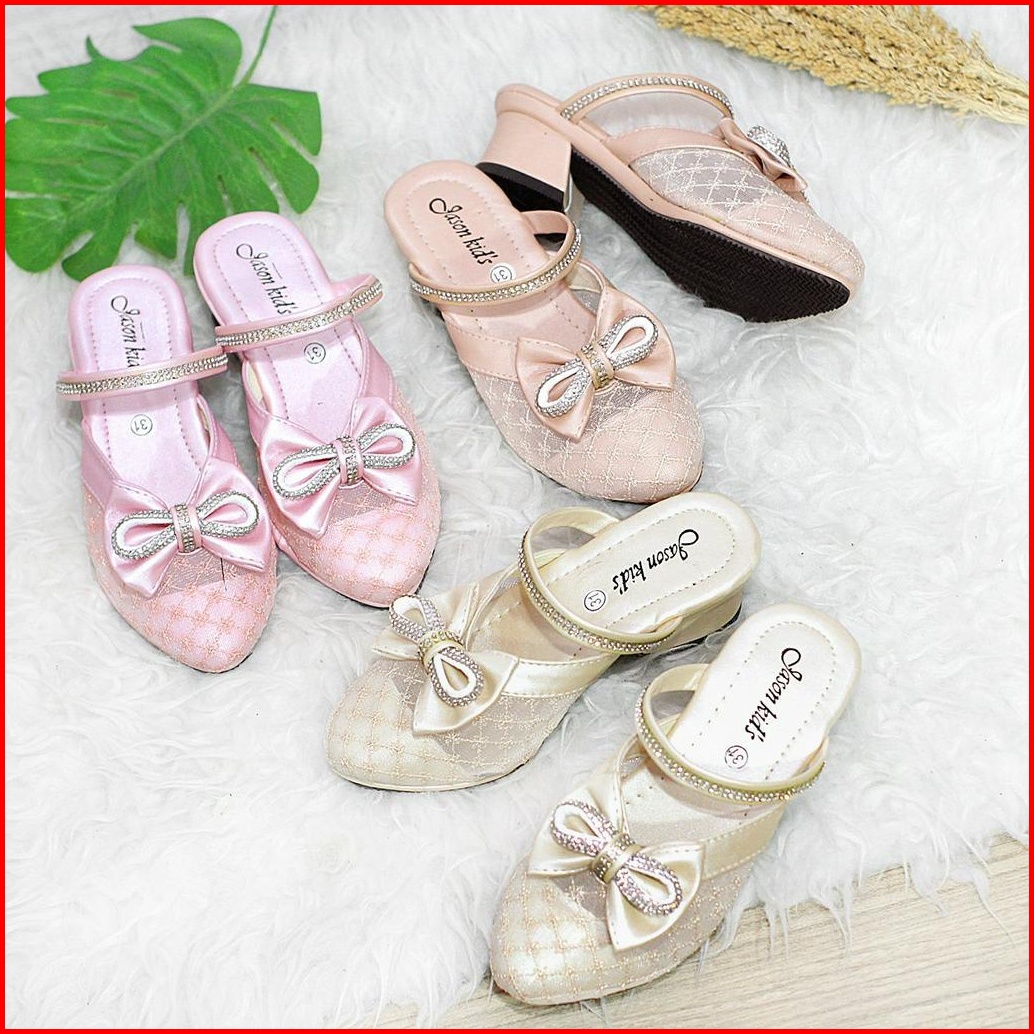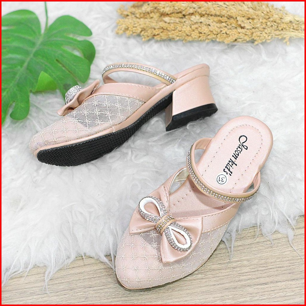 Sandal Pesta Anak Perempuan Hak Tahu 3cm Brukat Jala Pita Glossy