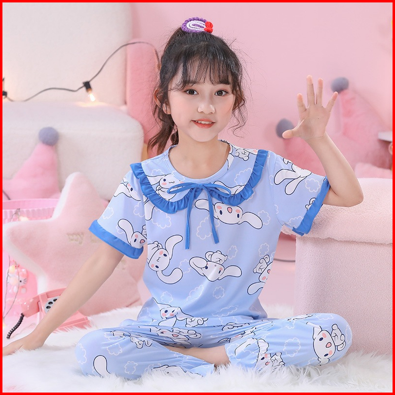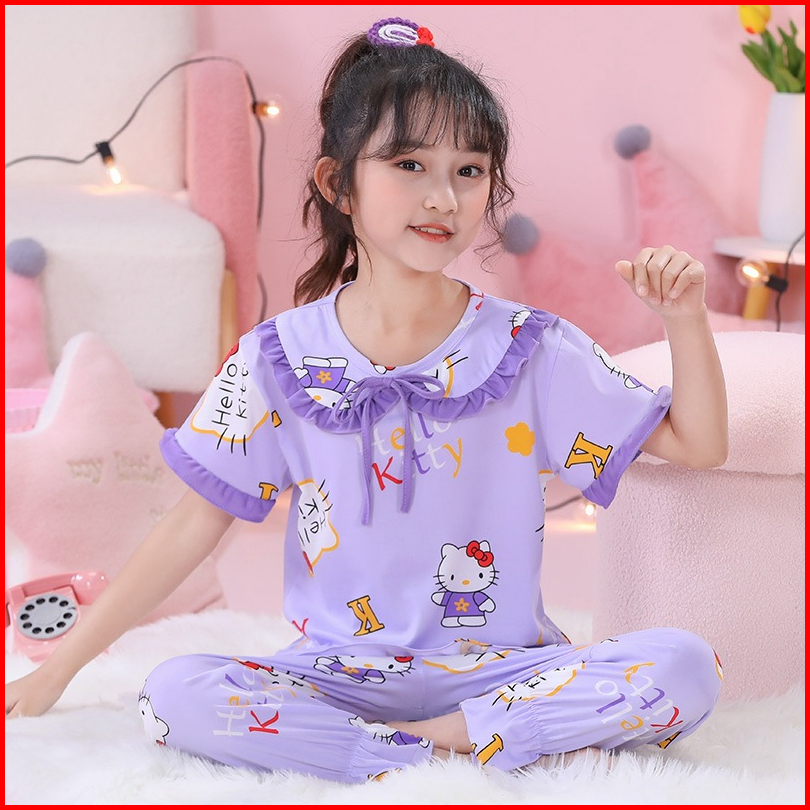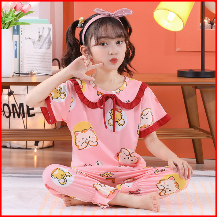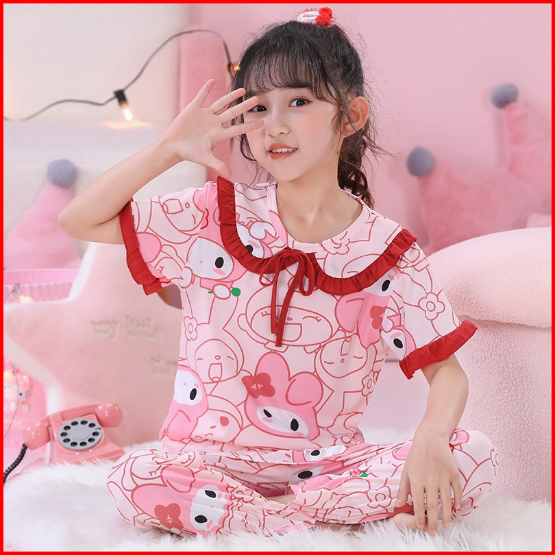 Baju Piyama Anak Perempuan Import Umur 1-10 Tahun Setelan Lengan Pendek Dan Celana Pendek Real