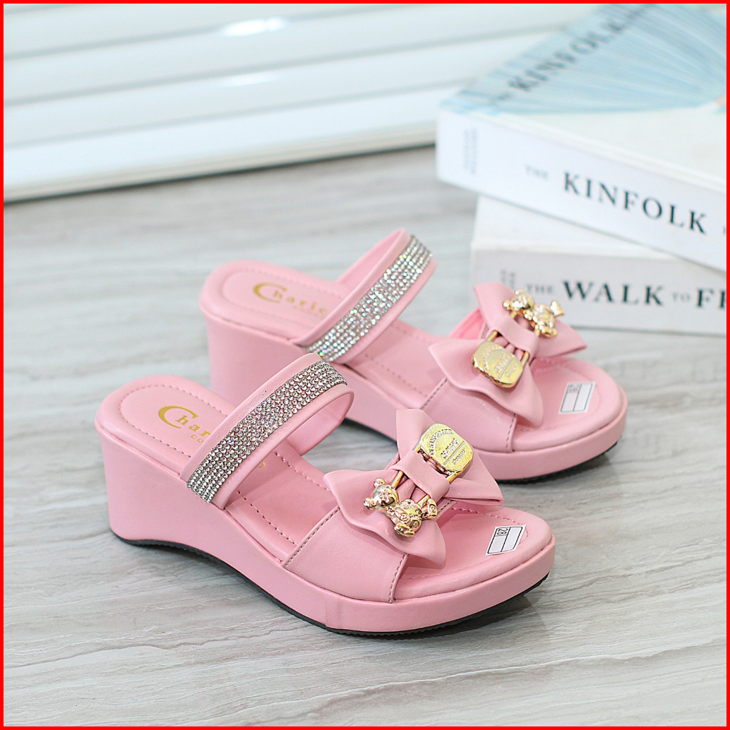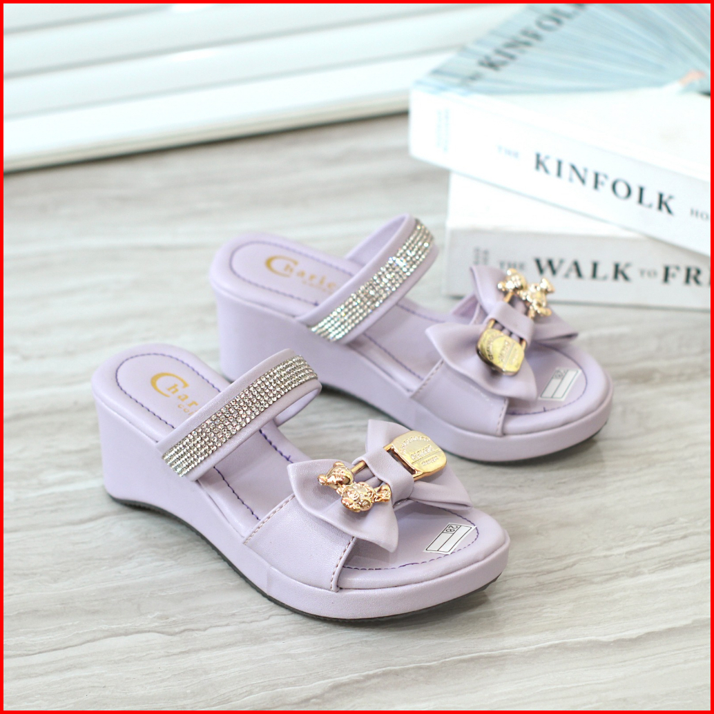 Sandal Wedges Anak Perempuan Tinggi 5cm Glossy Motif Pita