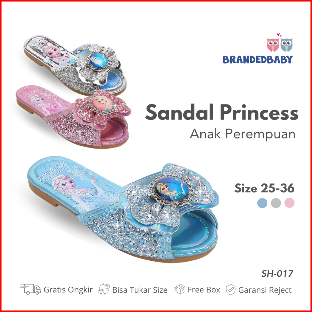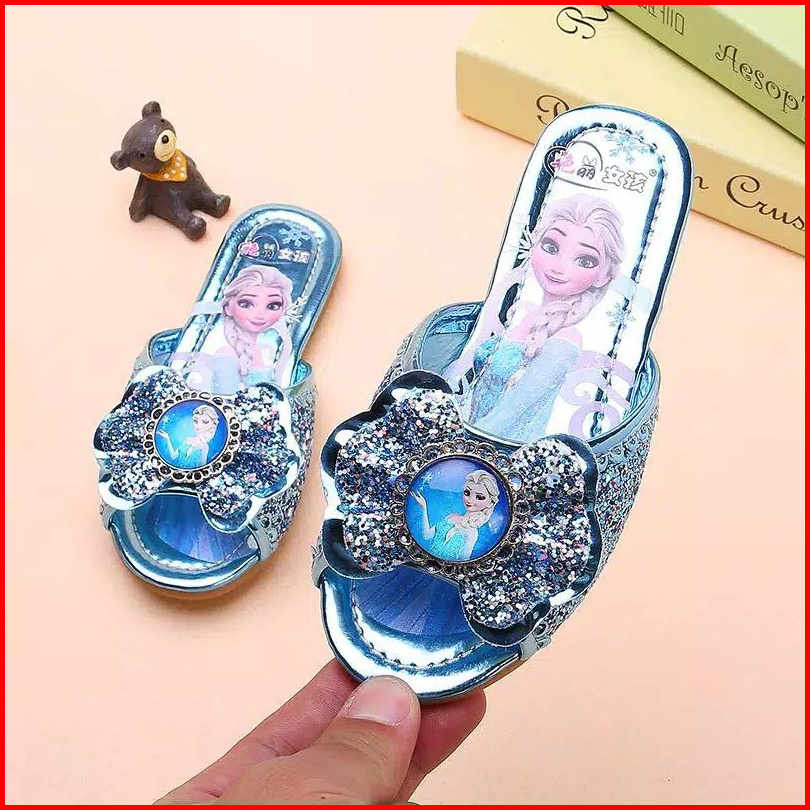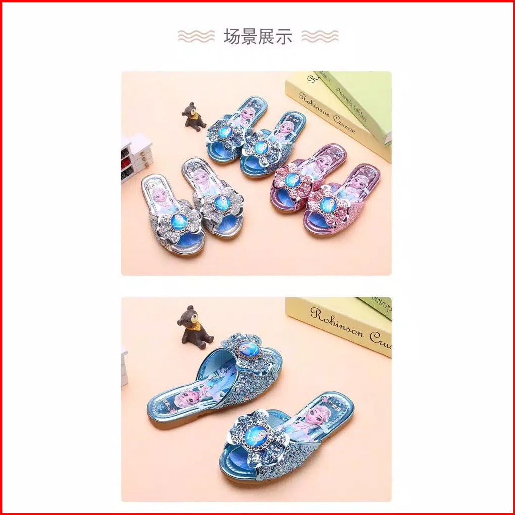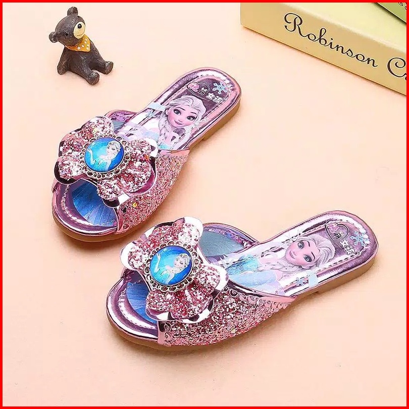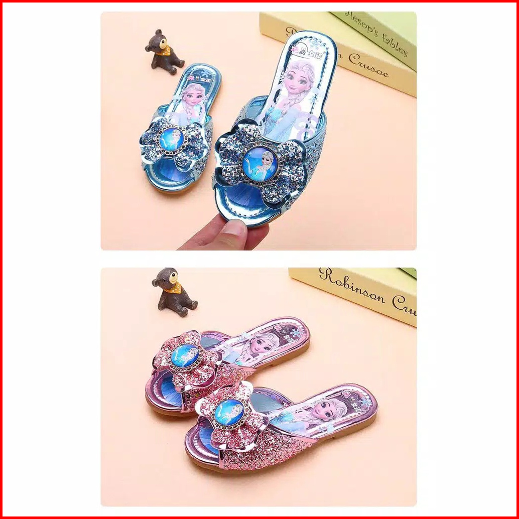 Brandedbaby 25-36 Sendal Frozen Anak Sandal Selop Blink Sequin Pink Biru Silver