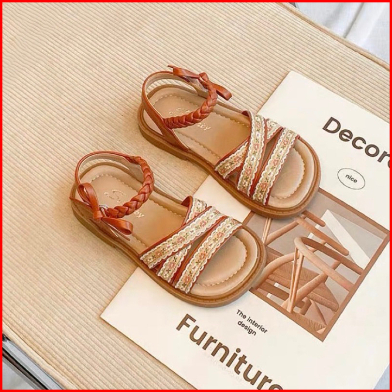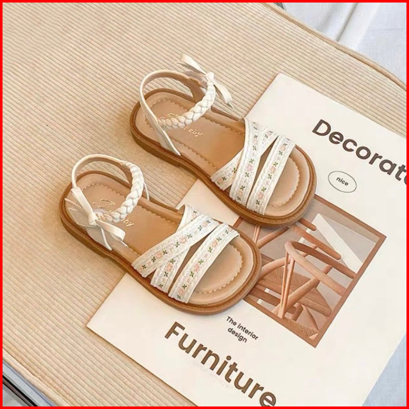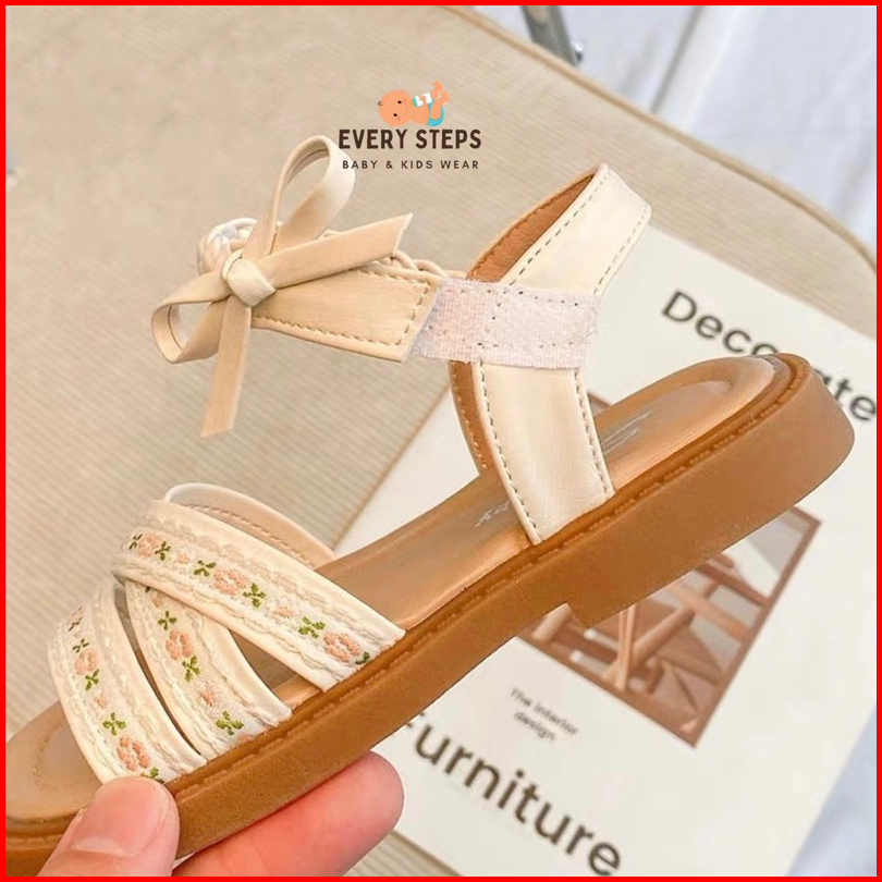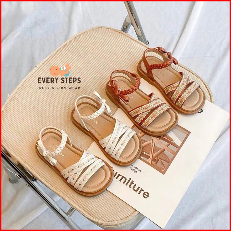 Everystep Size 22-30 Sepatu Sendal Anak Cewek Sepatu Datar Kulit Bayi Perempuan Bunga Bordir Anti Licin Vintage Ootd Kor