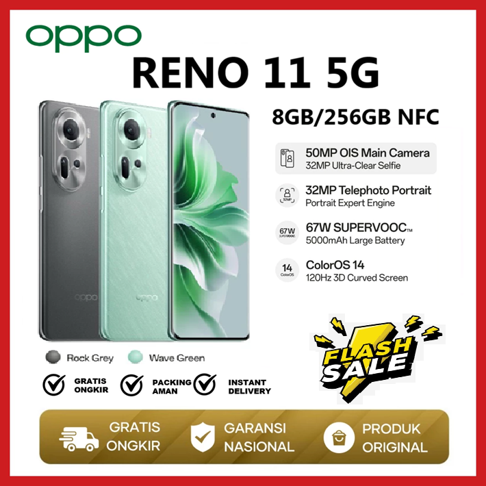 HP OPPO RENO 11 5G 8GB+256GB NFC Dimensity 7050 DI JAMIN ORIGINAL GARANSI RESMI
