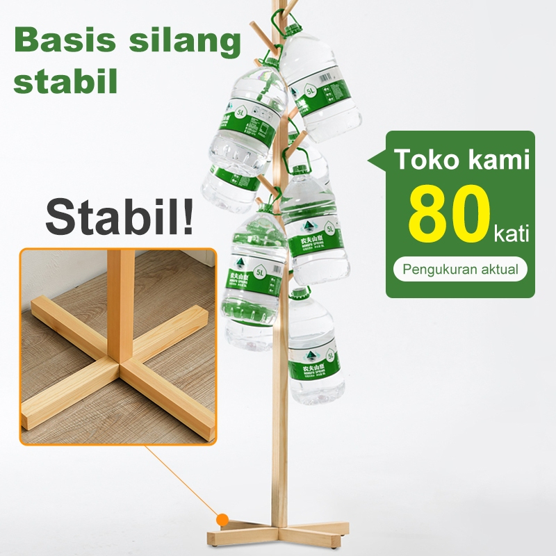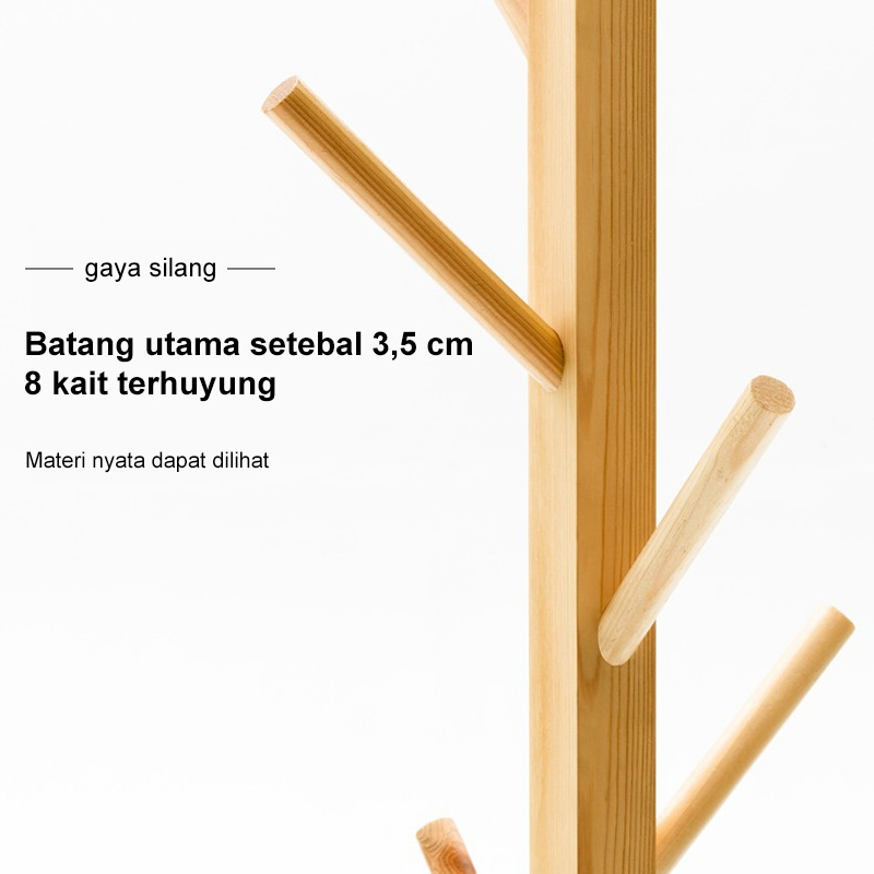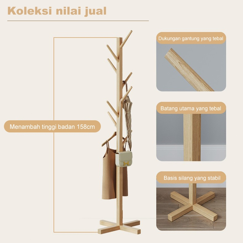 GANTUNGAN BAJU TOPI BERDIRI STAND HANGER KAYU GANTUNGAN TAS ESTETIK MULTIFUNGSI BARANG BAGUS