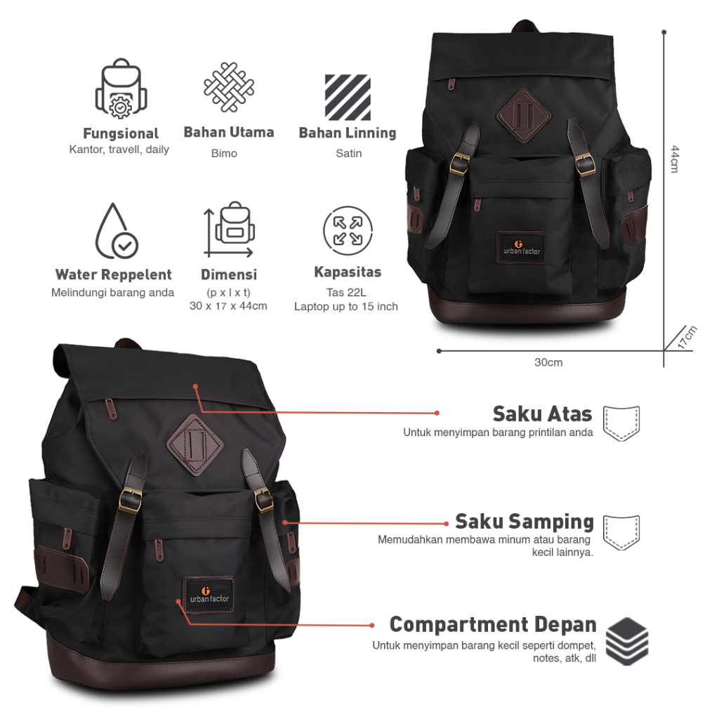 TAS LAPTOP PRIA TAS RANSEL BACKPACK URBAN FACTOR BRAIN STORM PREMIUM MURAH TERLARIS