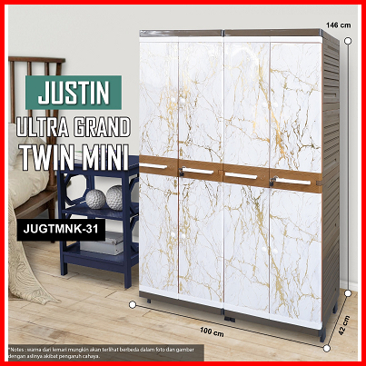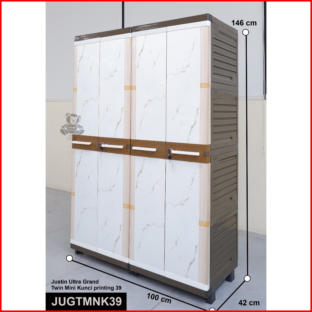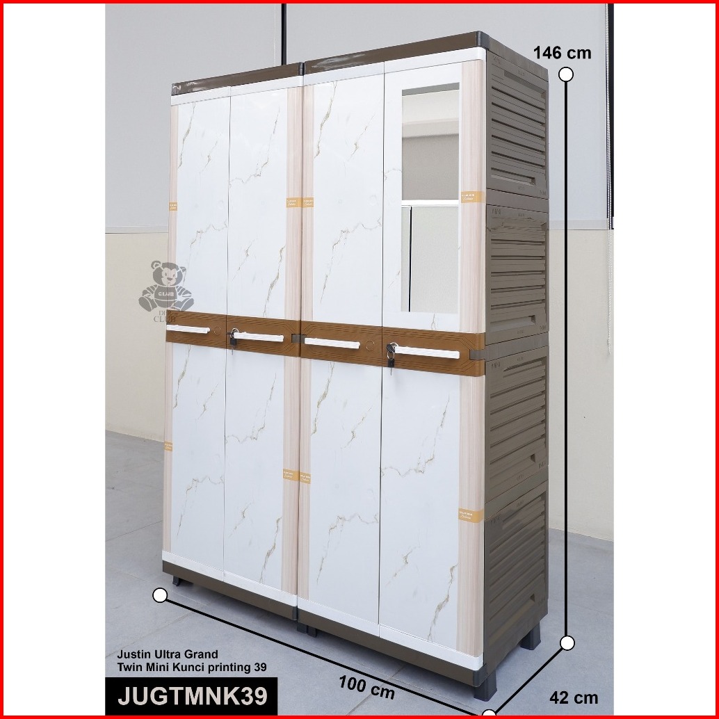 Jumbo Besar Lemari Plastik Baju Club Justin Ultra Grand Mini Twin Full Rak Kunci Cermin Kaca 4 Pintu
