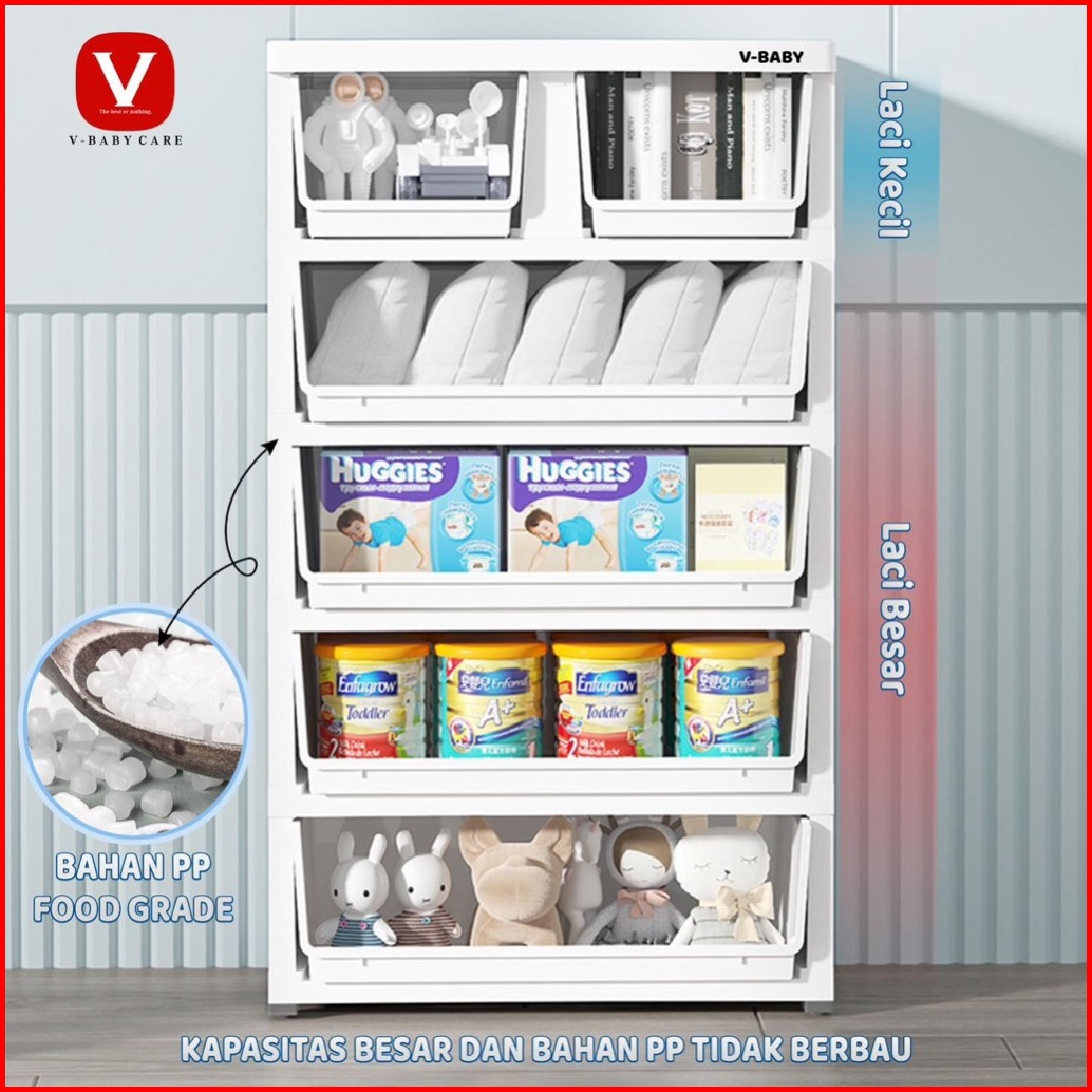 V-baby Care Lemari Plastik Anak Lemari Plastik Baju Lemari Pakaian Lemari Kabinet Lemari Ada Roda Furniture Import Premi