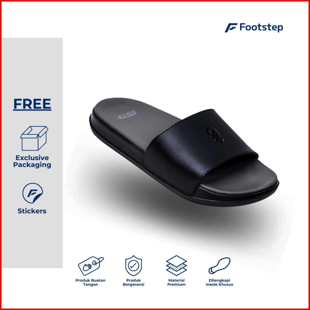 Sandal Pria Slide Footstep Footwear - Symbol V2 Full Black.