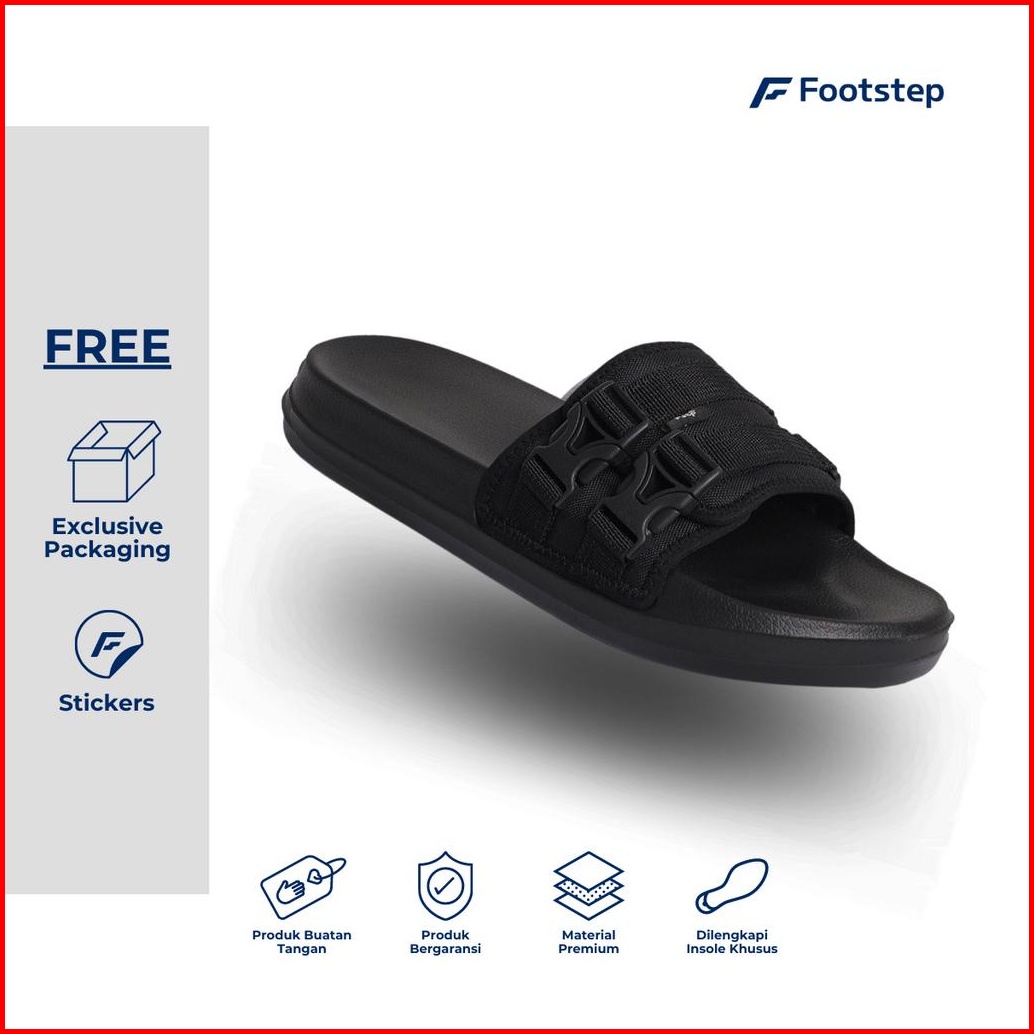 Sandal Slide On Pria Footstep Footwear Wolv Full Black