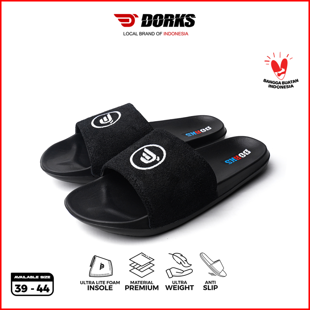 Dorks - New Logo Black Sandal Slop Casual Pria Wanita Sendal Slop Slipper Anti Licin