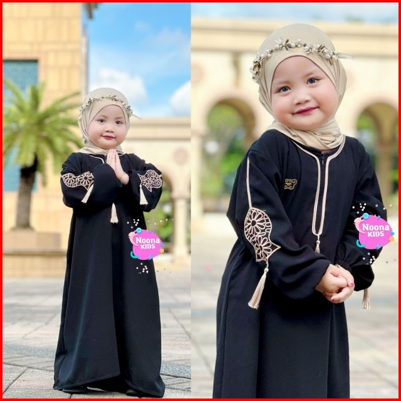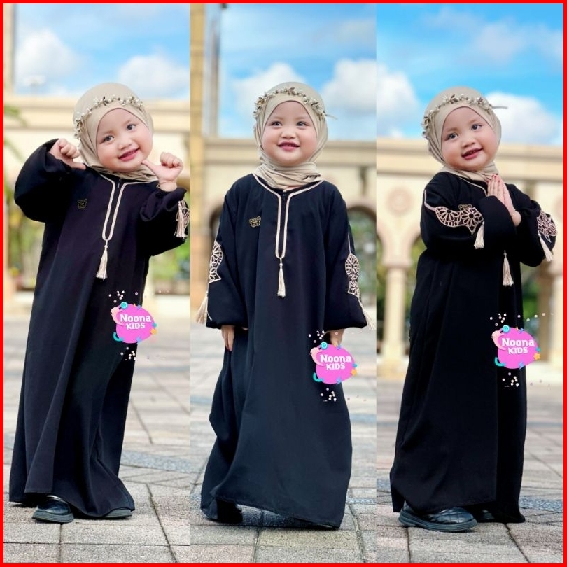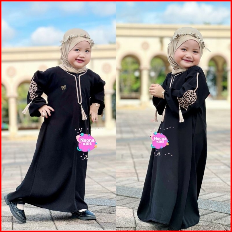 Noona Kids 1-14 Tahun Dress Anak Perempuan Busana Muslim Anak Gamis Anak Abaya Anak Bordir Terompa Tasle Terompah Tangan