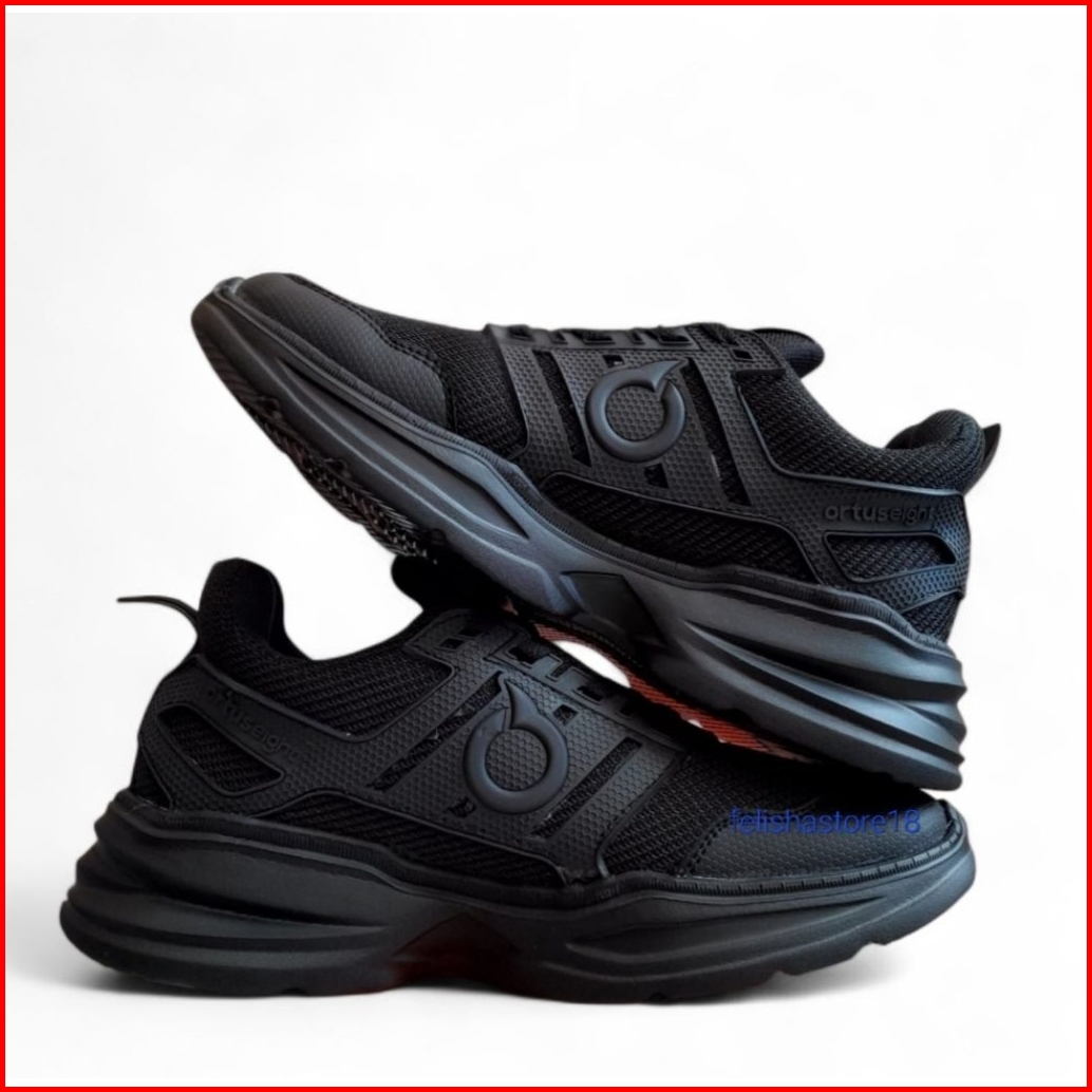Sepatu Running Dewasa Pria Wanita Premium Quality Sepatu Joging Lari Full Black Free Kaus Kaki