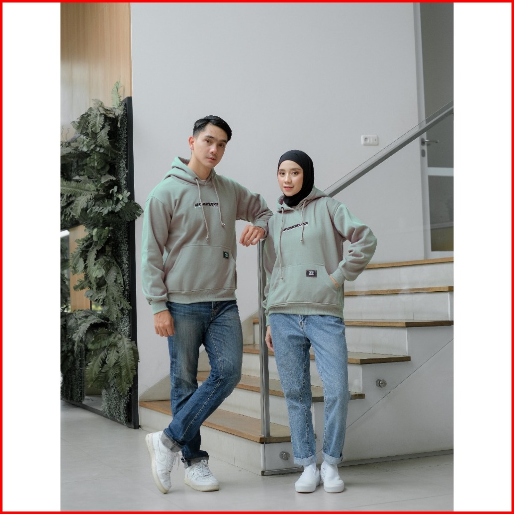 Bozzino - Sweater Hoodie Couple Pria Wanita Unisex Bordir Timbul Size M L Xl Xxl