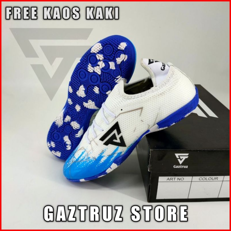 Sepatu Futsal Original Gastruz Venture White Blue Free Kaos Kaki Sepatu Putsal Original Terbaru