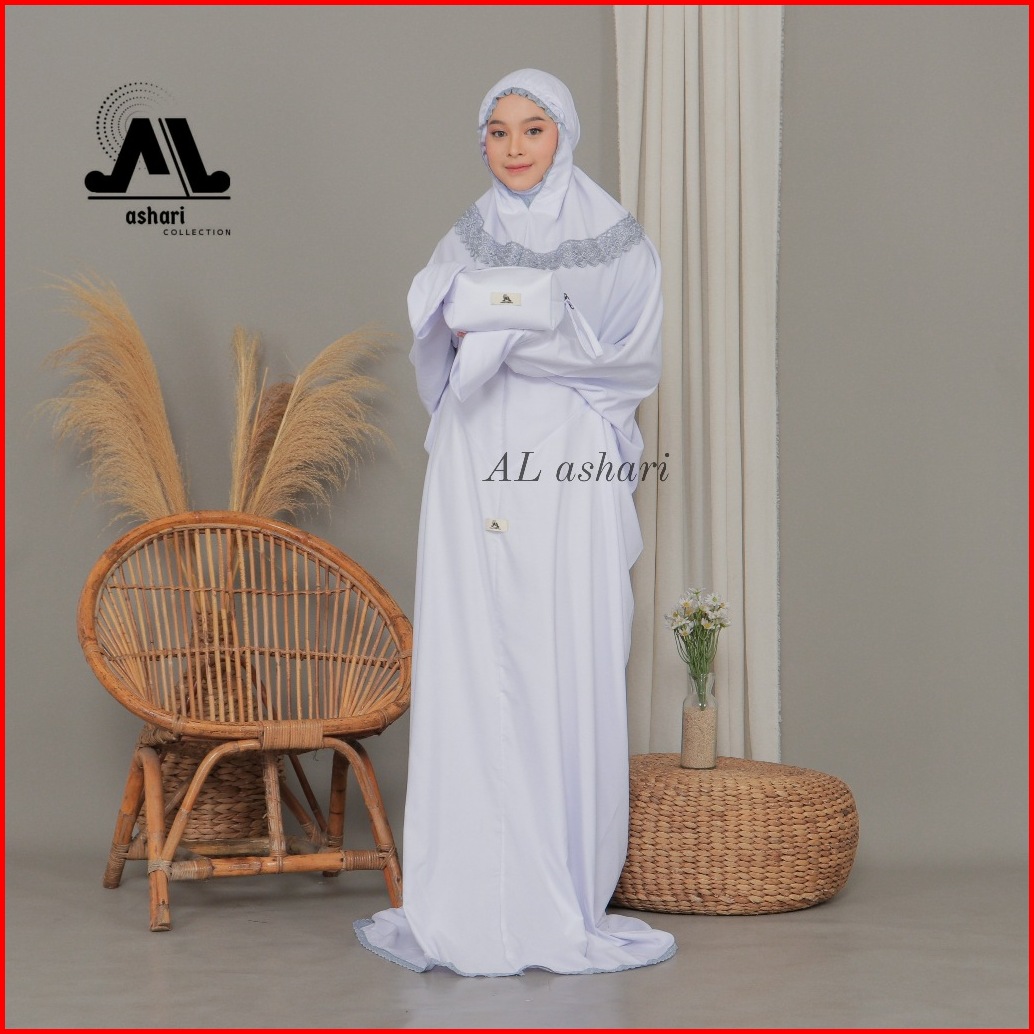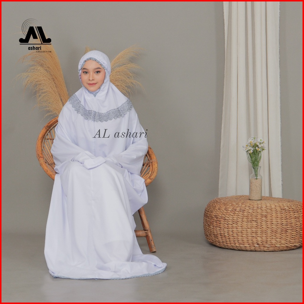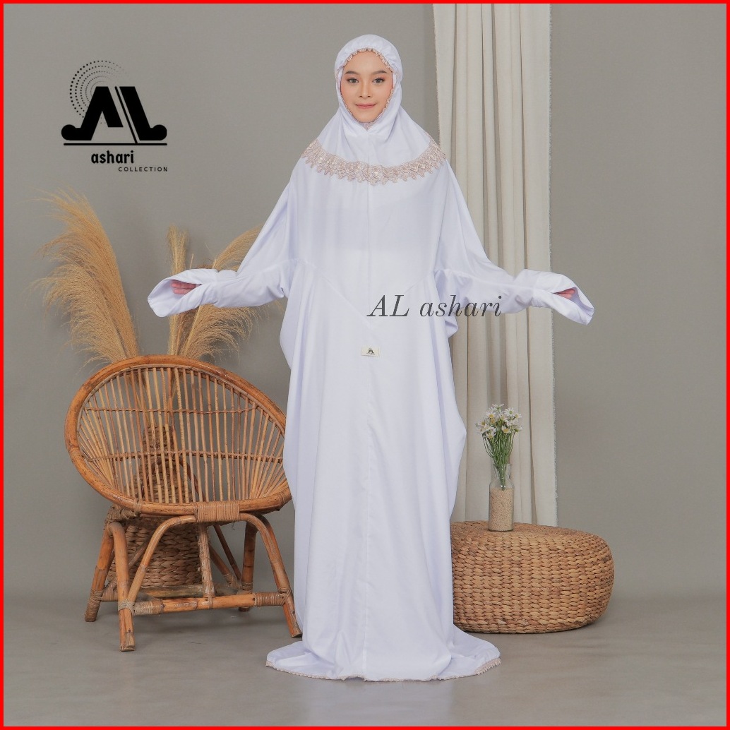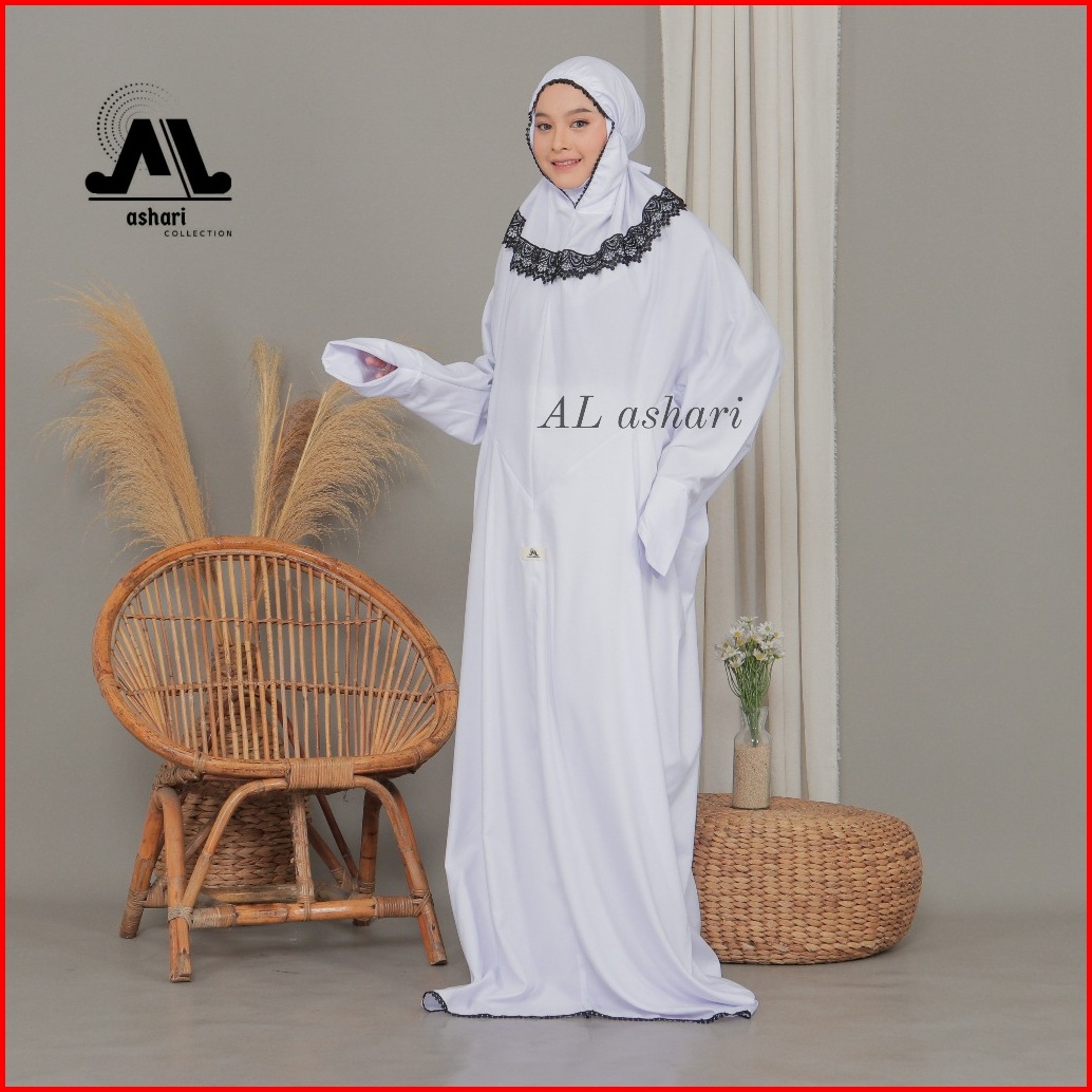 Mukena Terusan Dewasa Katun Putih Polos Renda Gipper Kalung Traveling