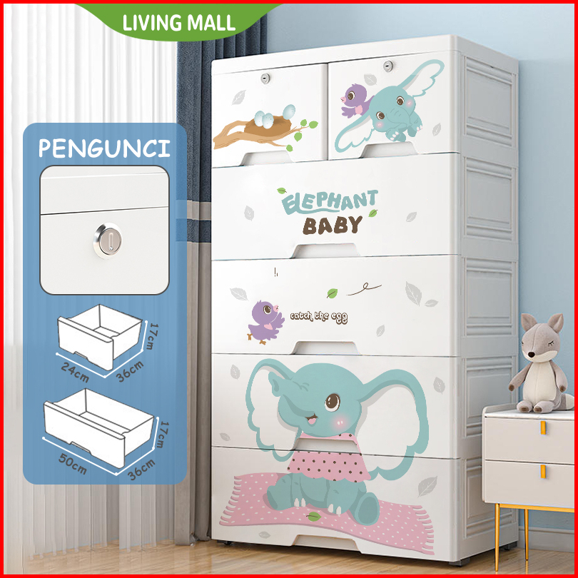 Living Mall Lemari Pakaian Plastik Anak Susun Bayi Baby Minimalis Perempuan Lemari Baju Bayi Anak Baby C77 C78 C79