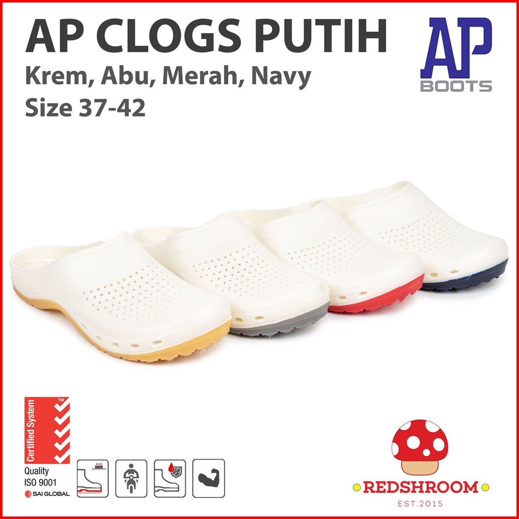 Sandal Slop Ap Clogs Putih Ap Boots Fashion Karet Lokal Nyaman Ringan Anti Air Slip Casual