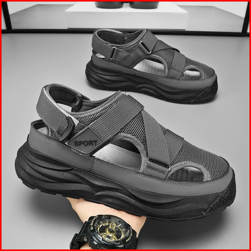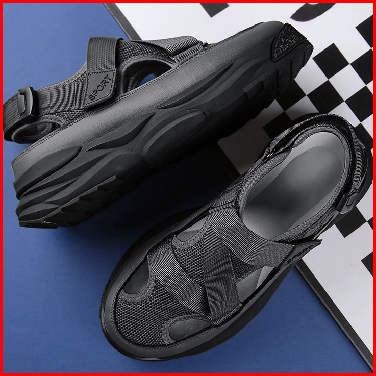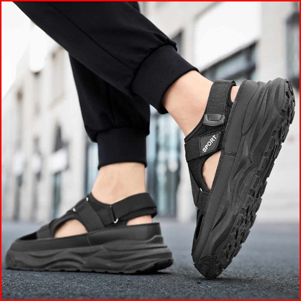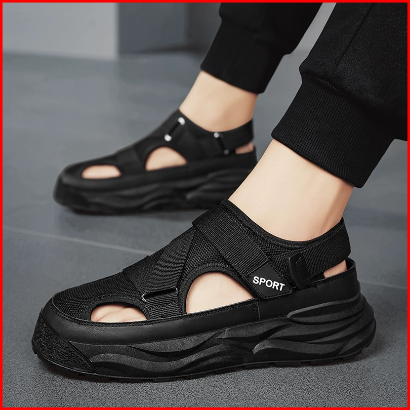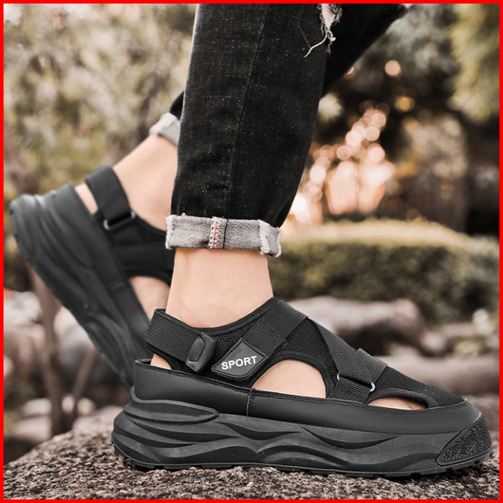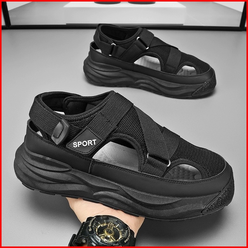 Highland Sepatu Sandal Pria Original Hitam Sendal Cowok Kekinian Model Terbaru Sandal Laki Laki Kasual Harian Fashion Mt