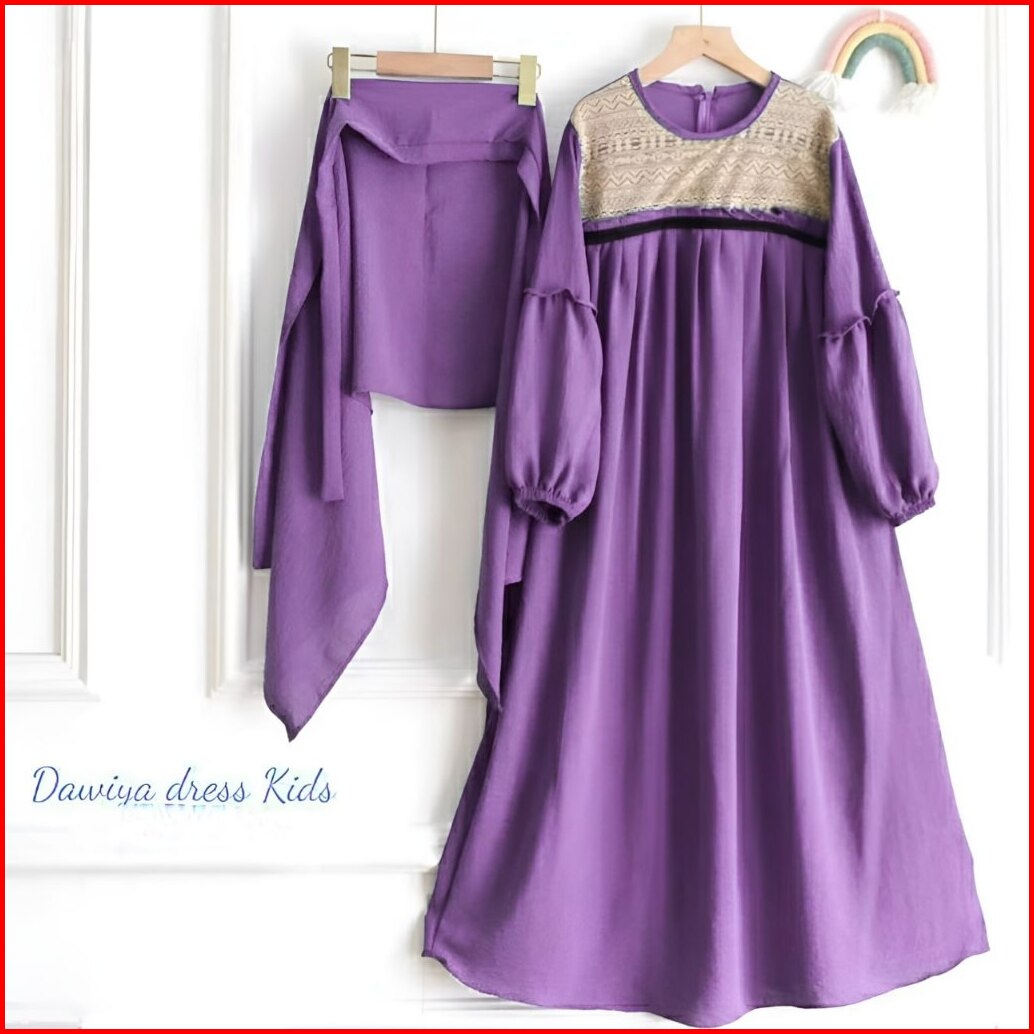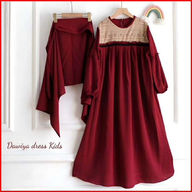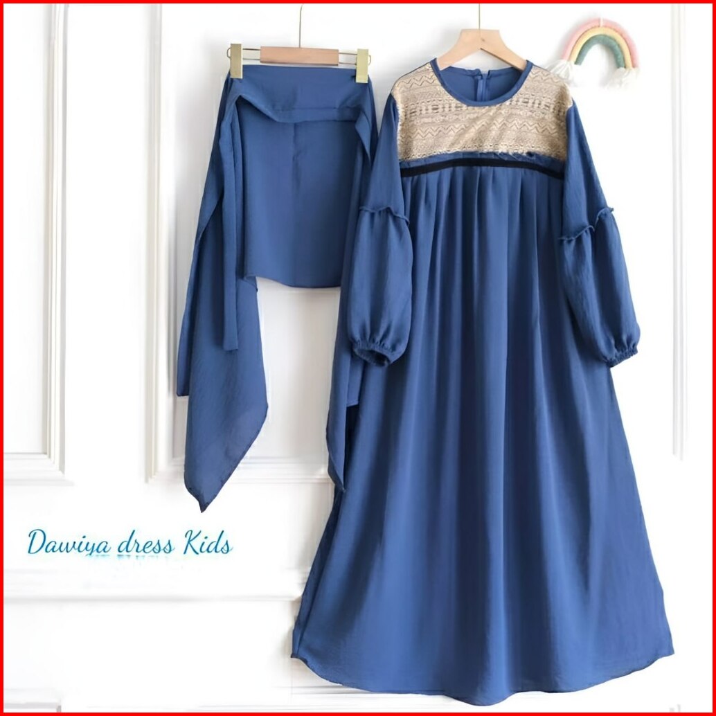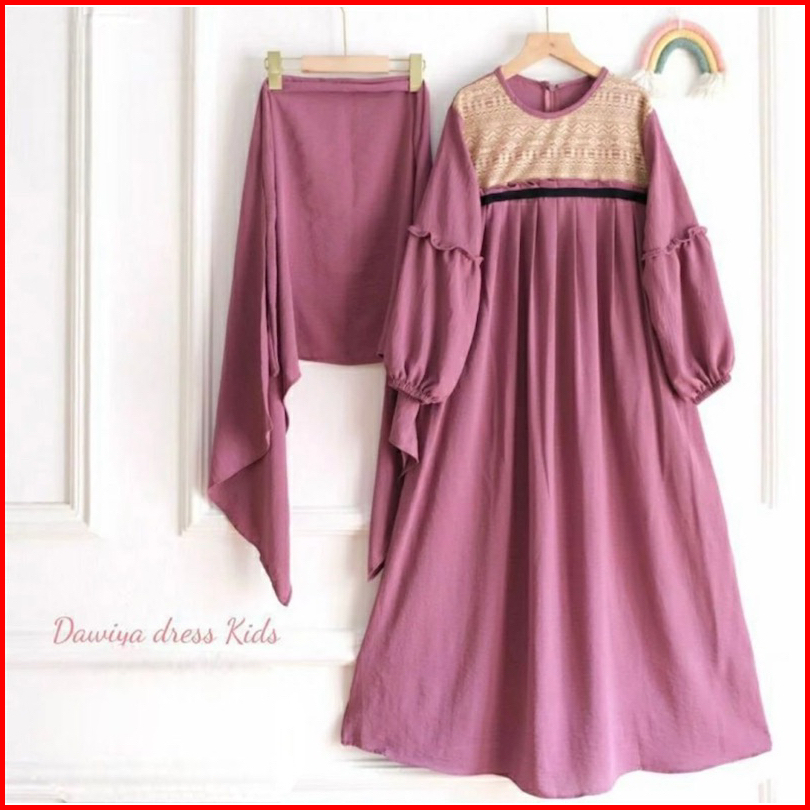 Baju Gamis Anak Dawiya Kids Free Hijab Bahan Crinkle Airflow Terbaru 6-14th Baju Anak Perempuan Viral Lebaran 2024 Baju