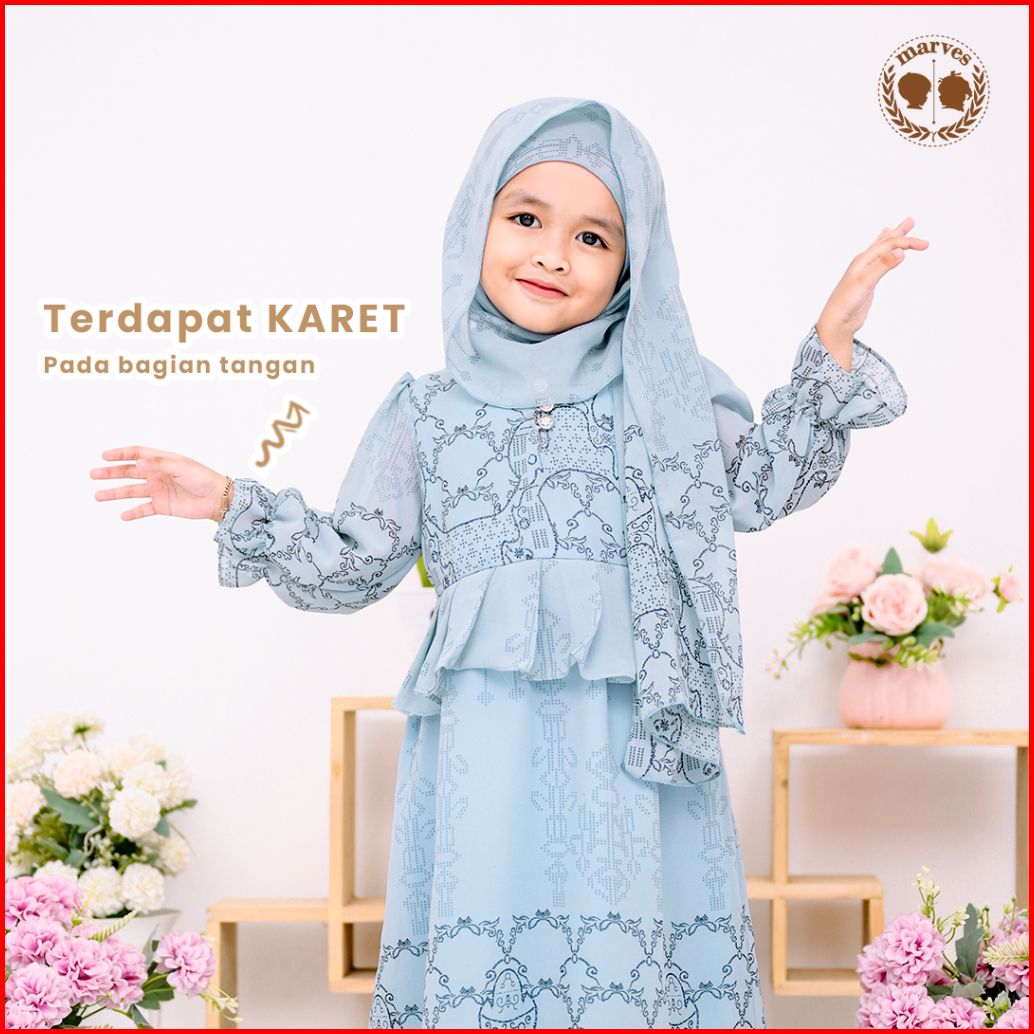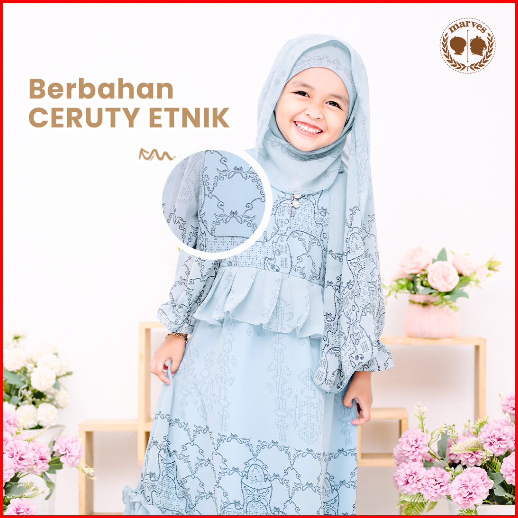 Marves Syera Gamis Anak Etnik Syari Free Krudung Bahan Crinkle Usia 1 Hingga 14 Tahun