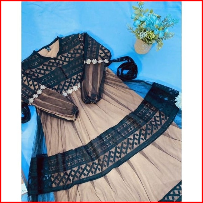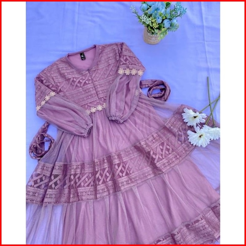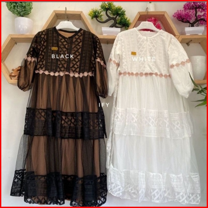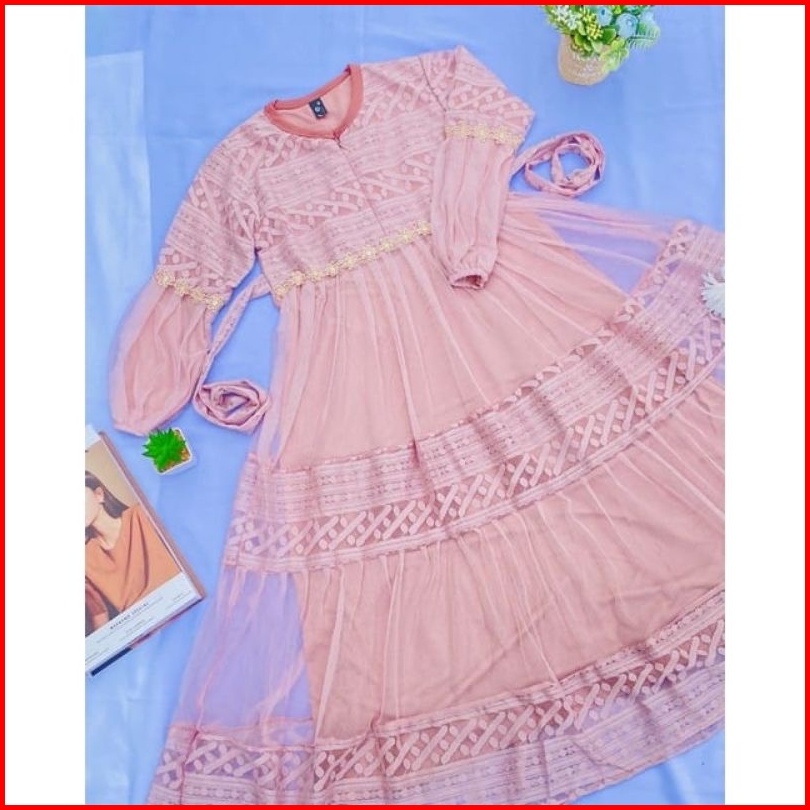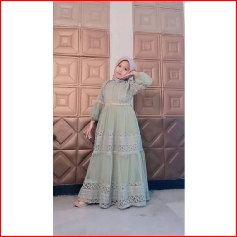 Gamis Pesta Raina Anak Perempuan Umur 3-15 Tahun Bahan Brukat Mix Renda Melati Terlaris 2024