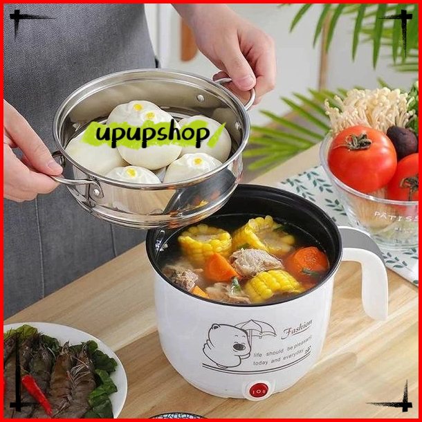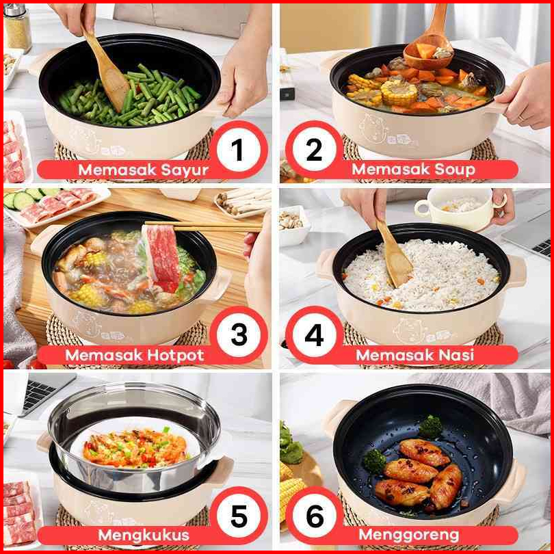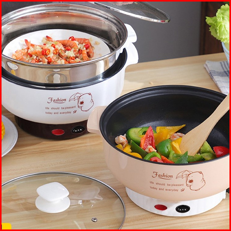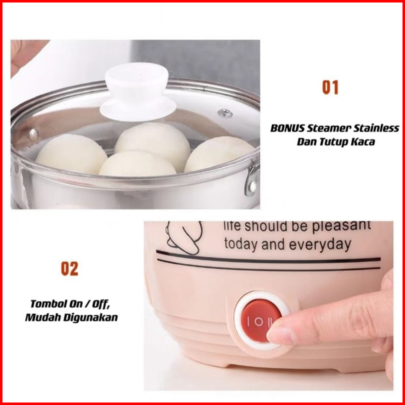 Panci Listrik Serbaguna Free Kukusan Stainless 1 Tombol - Panci Listrik Anti Lengket Ukuran 1l 2l Tutup Kaca Anti Panas