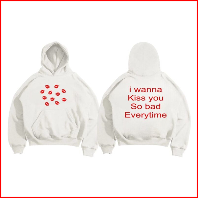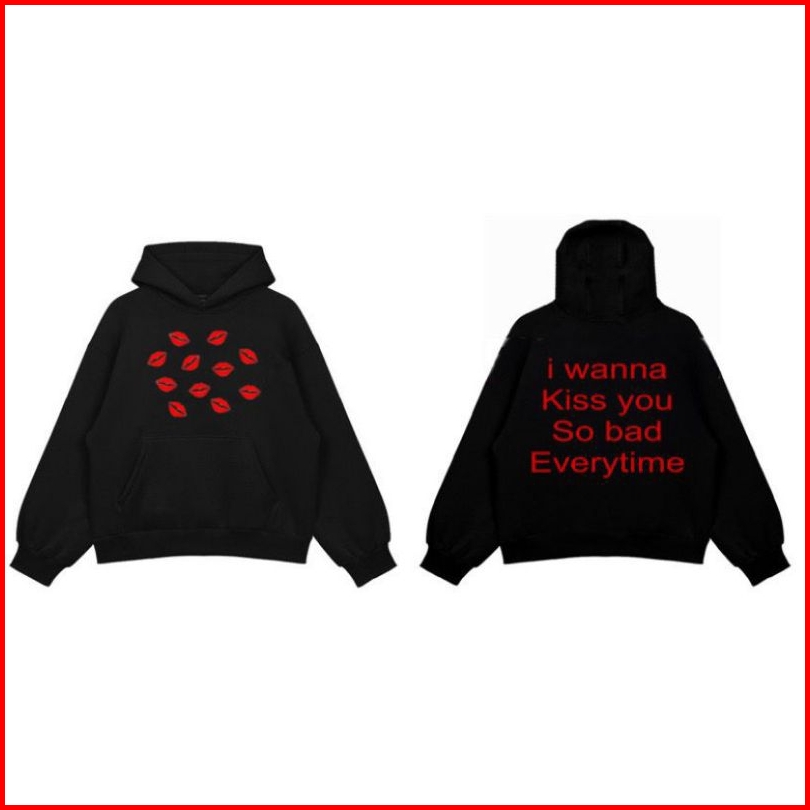 Hoodie Boxy Blacksolid Oversize I Wanna Kiss You Unisex Hoodie Best Seller