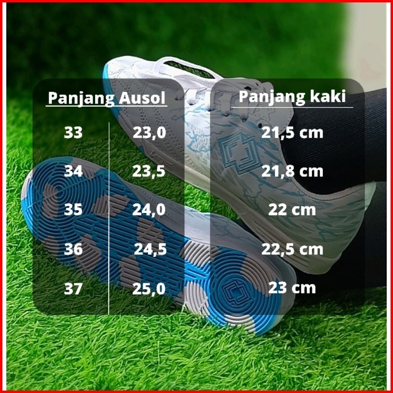Sepatu Futsal Attack Classic White Toska Junior Size 33-37