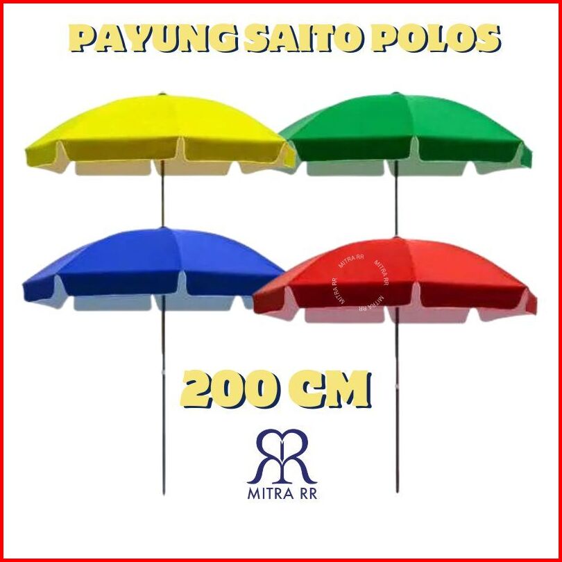 Payung Pantai Saito Polos 200 Cm Payung Taman Cafe Tenda Jualan Dagang Parasol - Free Packing Bubble Wrap Dan Dus
