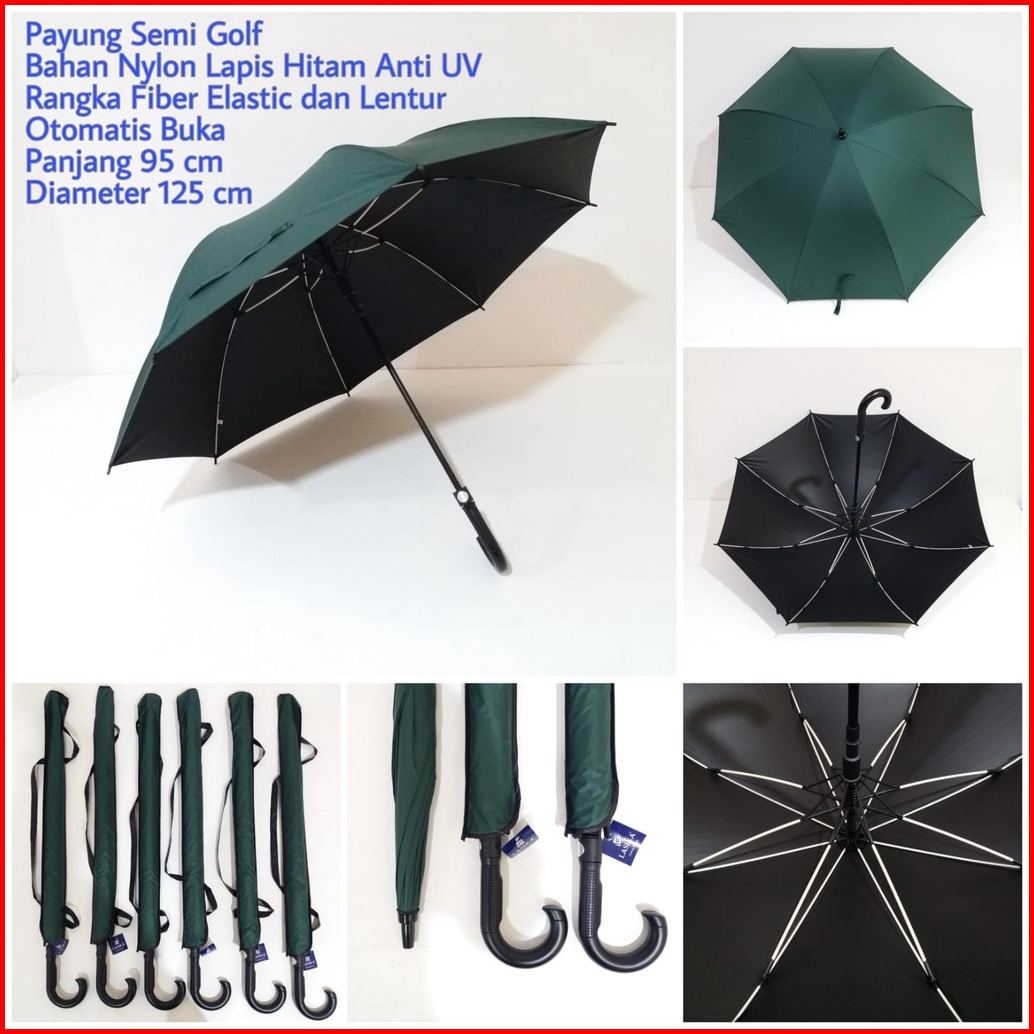 Payung Golf Automatis Rangka Fiber Warna Bahan Nylon Gagang J