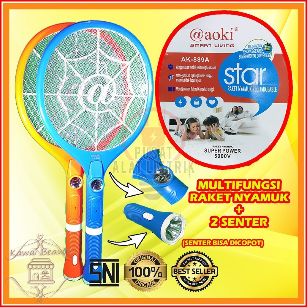 Aoki 889a Senter Raket Nyamuk Senter Cabut Mosquito Killer Efektif Membunuh Nyamuk Dengan Cepat