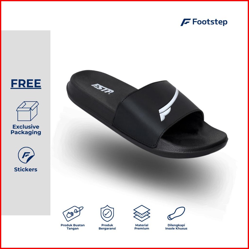 Sandal Pria Slide Footstep Footwear - Soul Black White
