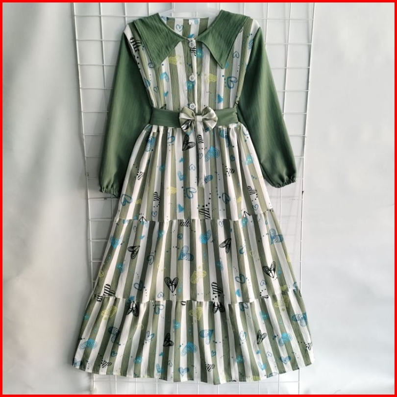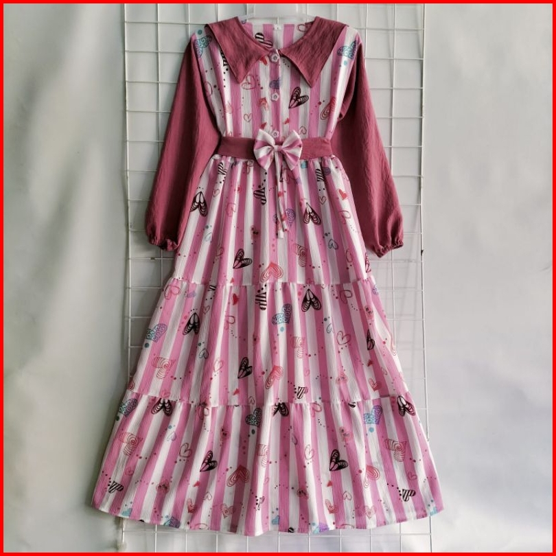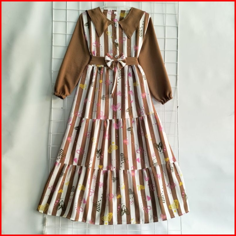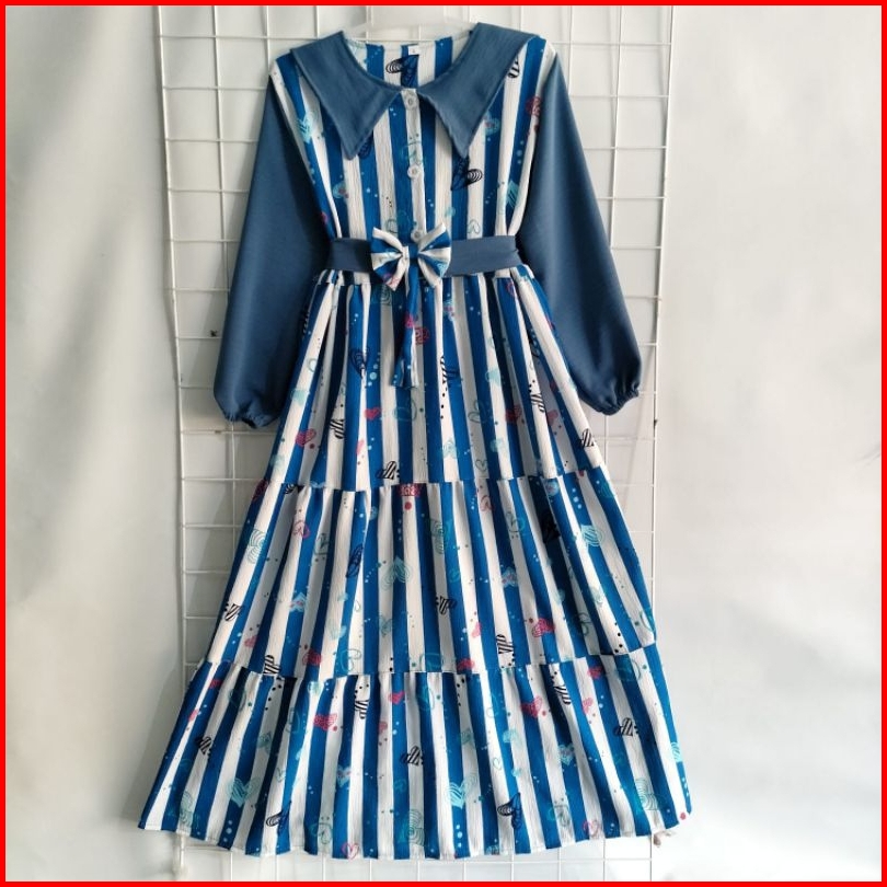 Gamis Salur Anak Bahan Crinkle Ratu Motif Salur 3-12 Tahun