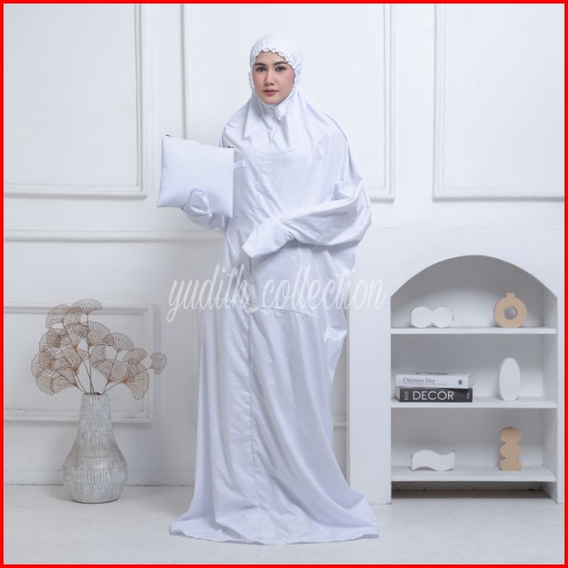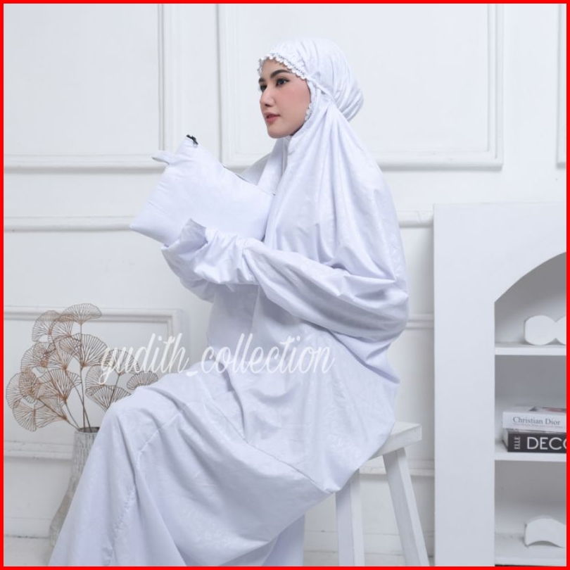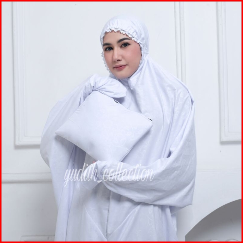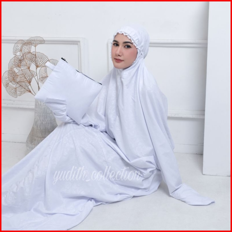 Yudith - Mukena Terusan Dewasa Putih Katun Embos Motif Bunga Free Tas