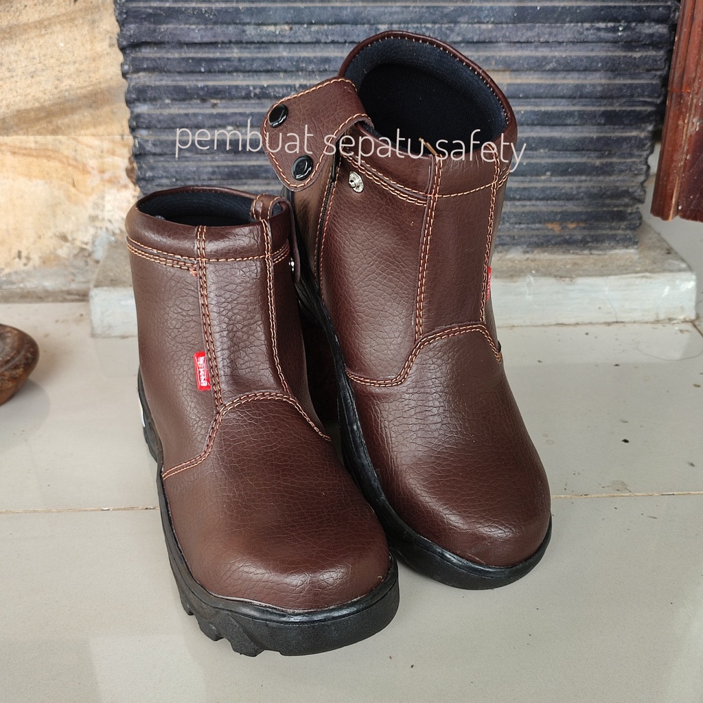 Sepatu Safety Resleting Terbaru Ujung Besi Sepatu Touring Hiking Kantor Pabrik Proyek Kualitas Mahal Resleting Semi Boot