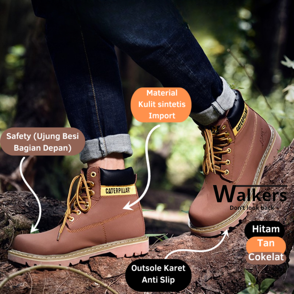 Sepatu Safety Pria Boots Caterpillar Steel Toe - Sepatu Boots Pria Safety Shoes Ujung Besi - Sepatu Pria Kerja Lapangan