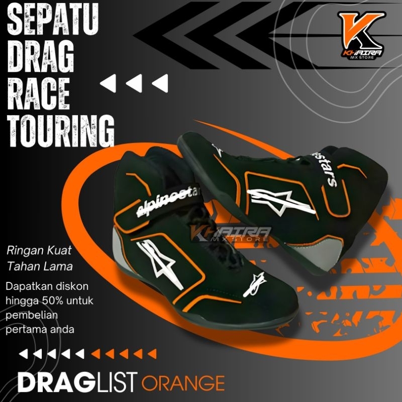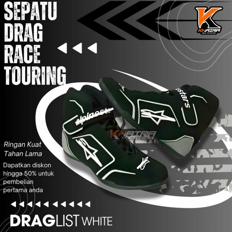 PROMO Sepatu touring bikers/sepatu balap dragrace hitam list hijau 02